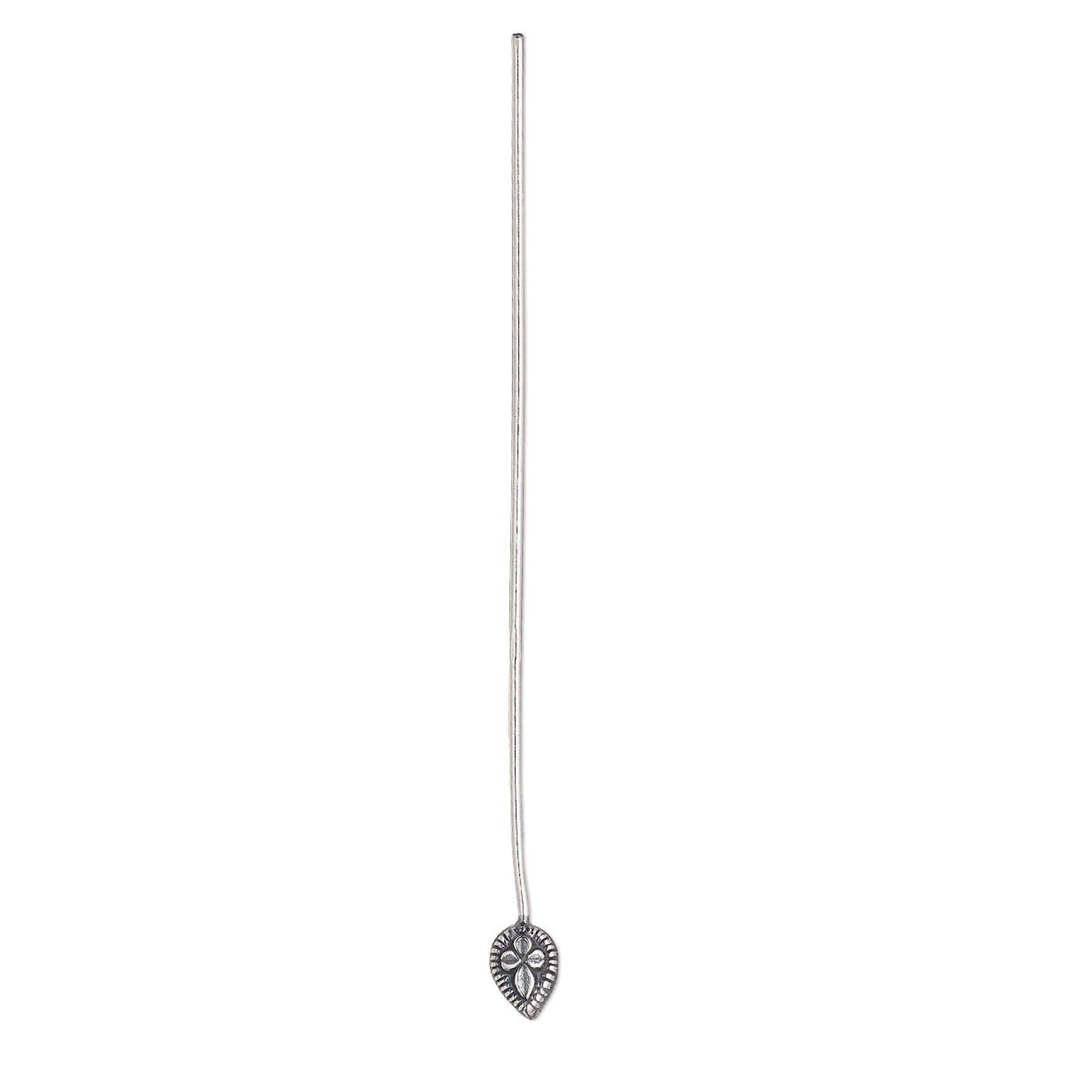Head pin, sterling silver, 2-1/2 inches with 7x5mm fancy teardrop, 21 gauge. Sold per pkg of 6.