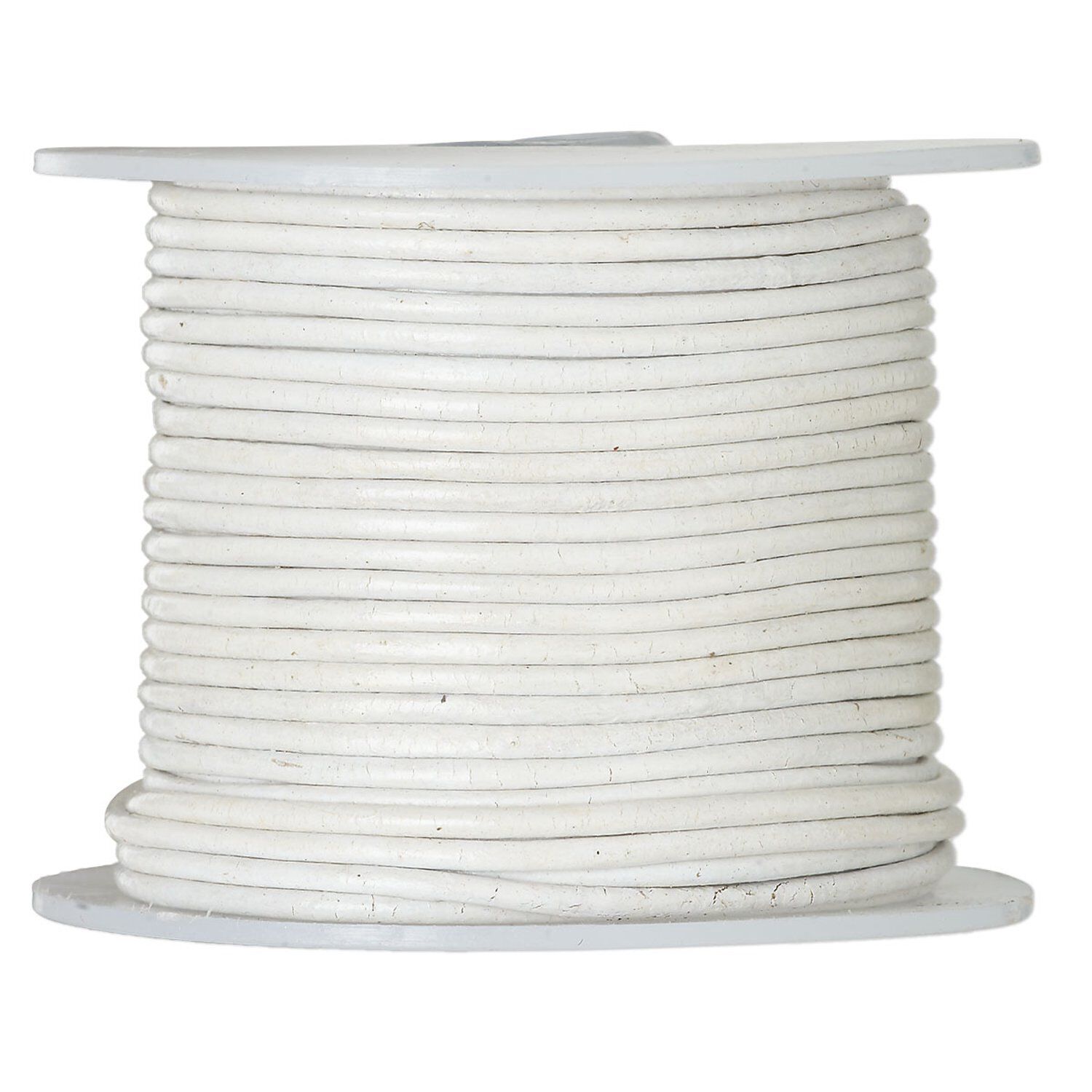 Cord, leather (dyed), ecru, 1.5mm round. Sold per 25-yard spool.