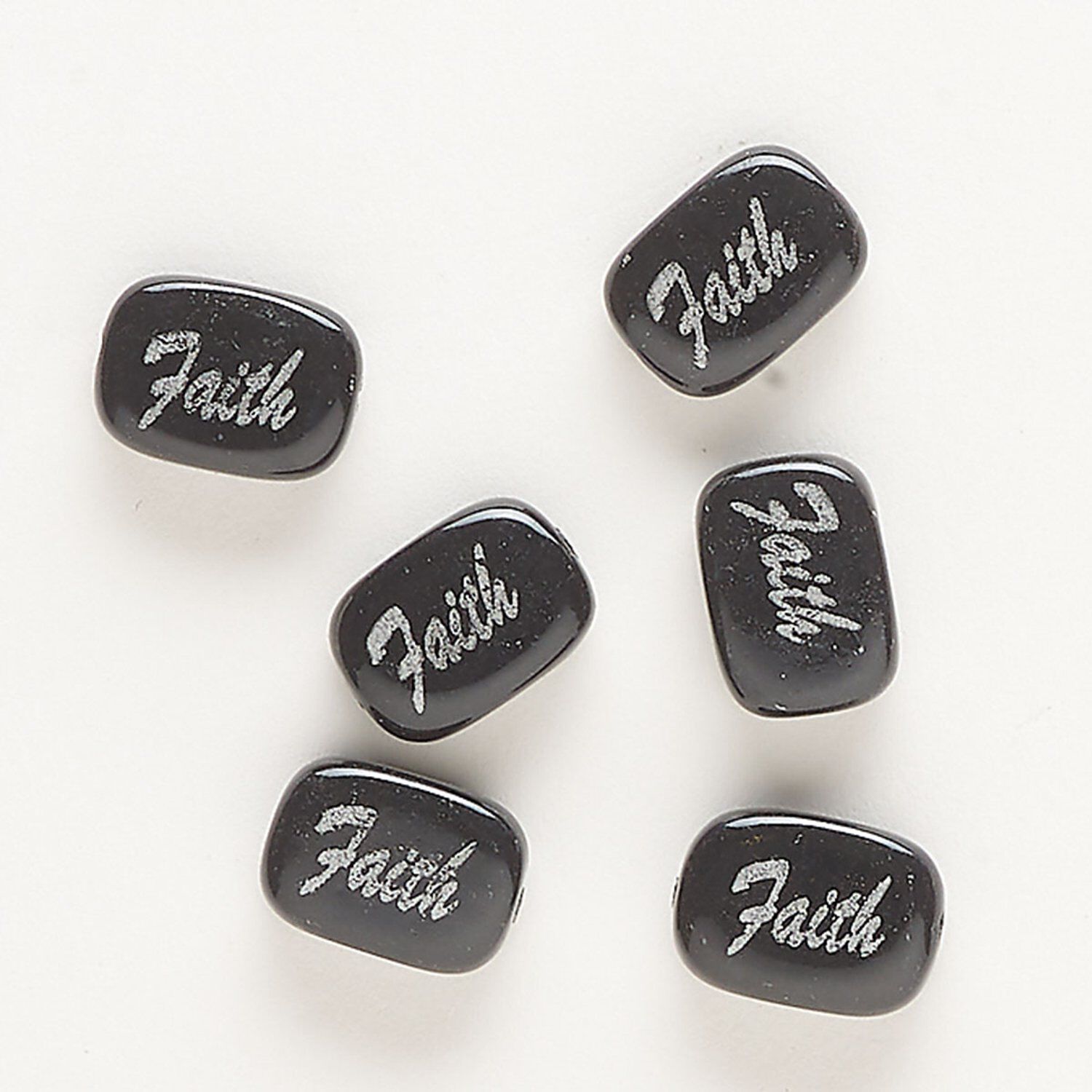 Mountain "jade" 1pkg10, flat double-sided "Faith" rectangle bead 14x10mm