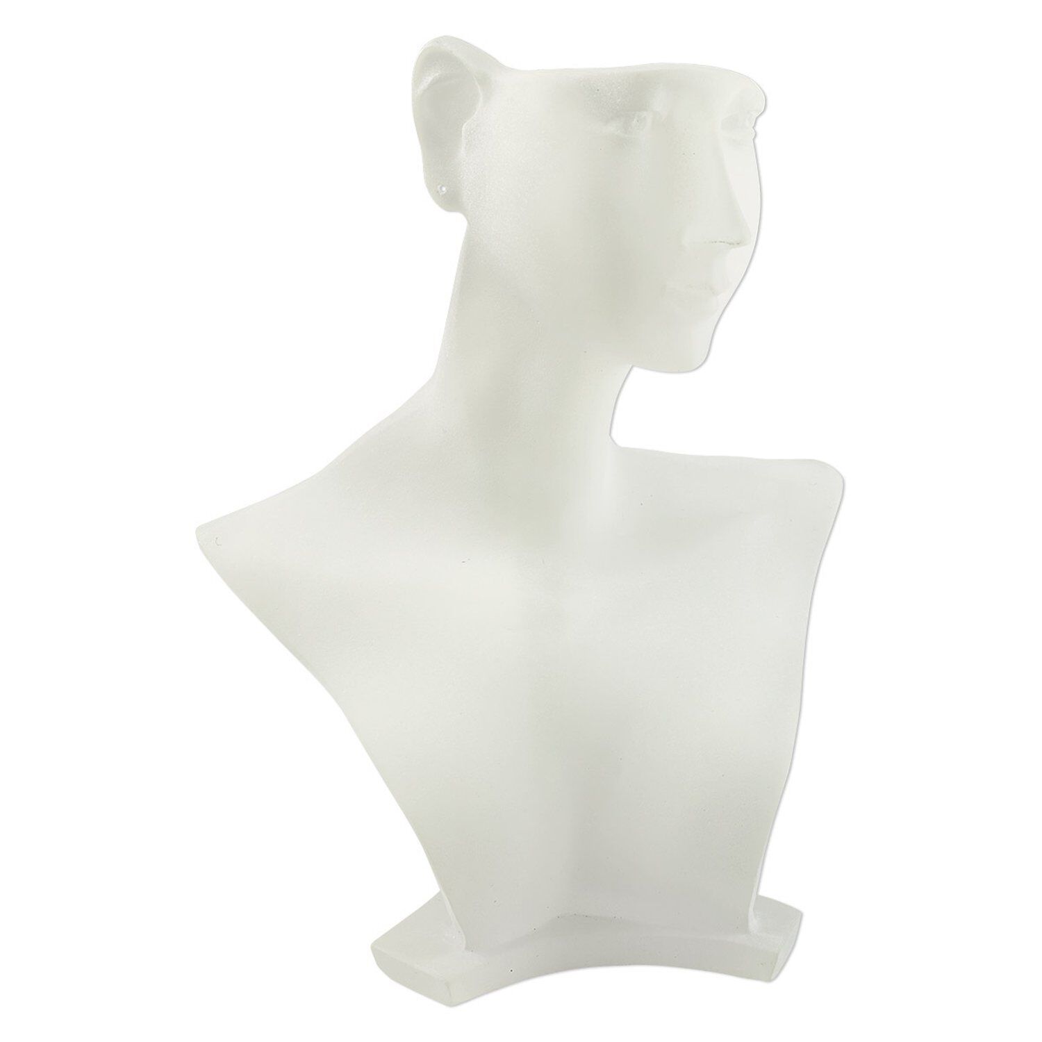 Classic styling, frosted acrylic display, perfect for multi-use. Earlobe has hole for earring display, long elegant neck for chokers and necklaces and dramatic bust to enhance drape of designer neckwear. One-piece construction comes ready to use!