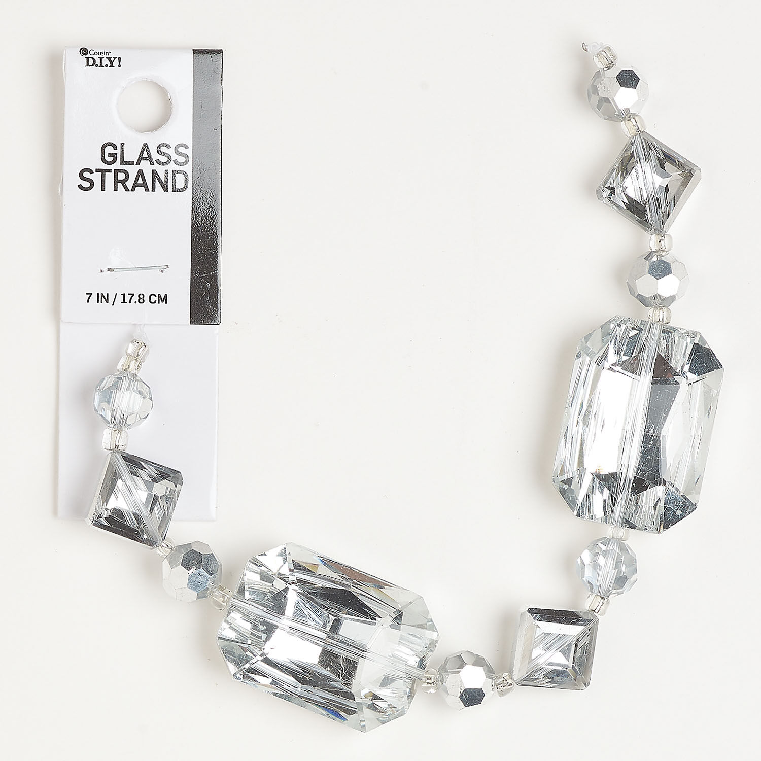 Bead assortment 1pkg11, glass, clear and silver, 8-9mm faceted round / 16-17mm faceted puffed diamond / 33x24mm faceted puffed rectangle.