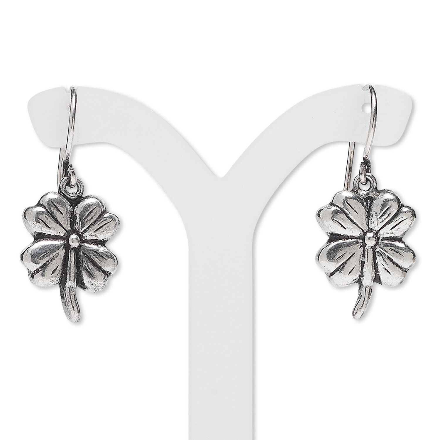 Earring, antiqued sterling silver, 16x13mm four-leaf clover with fishhook ear wire. Sold per pair.