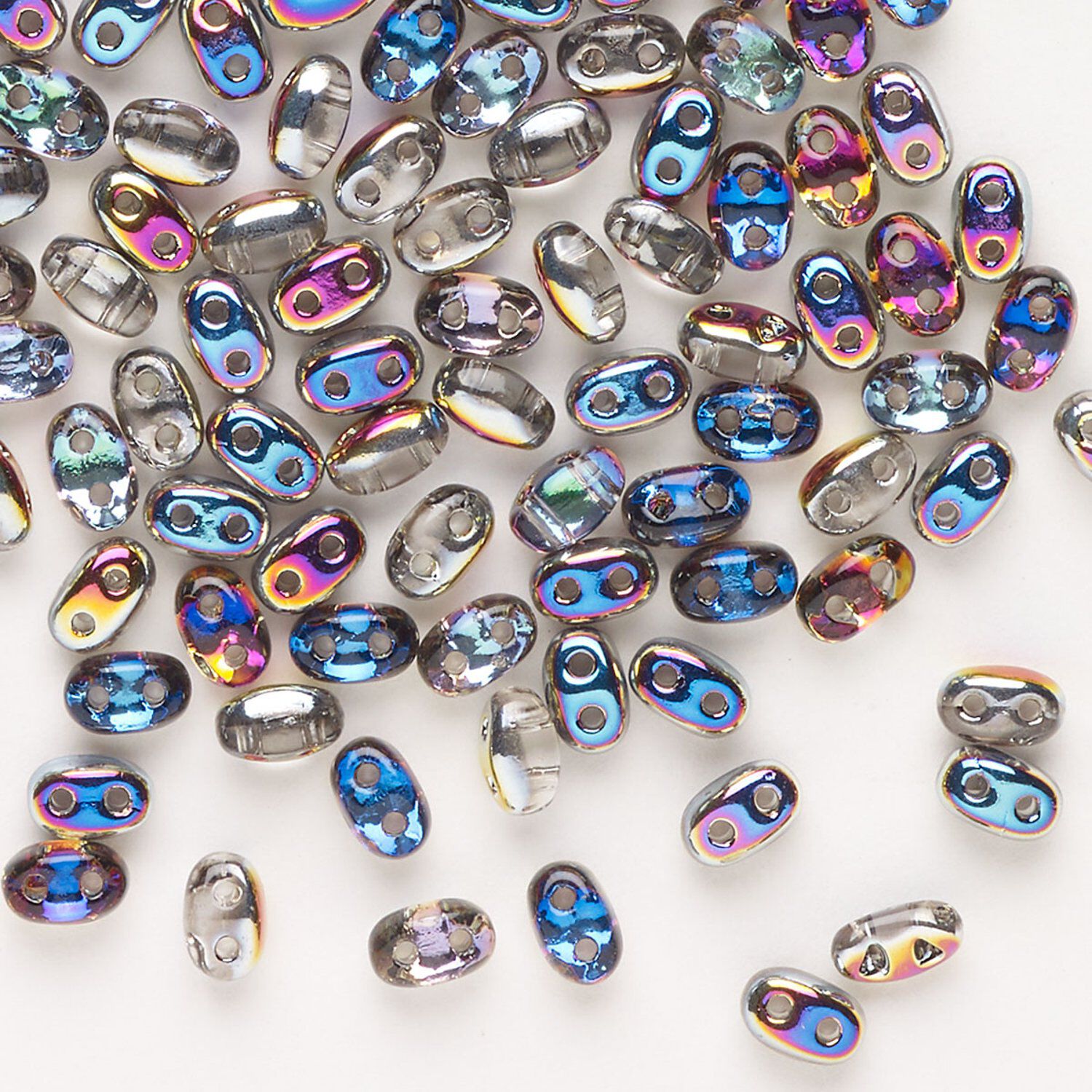 Seed bead, Preciosa Twin™ Pressed Twin Czech glass, pkg/200, 5x2.5mm oval, opaque iris silver, (15297).