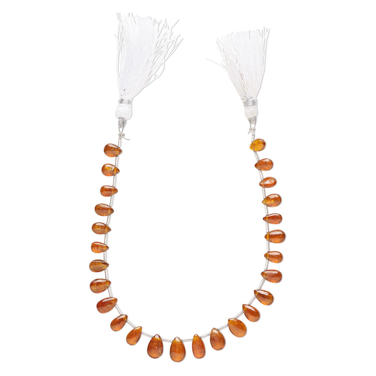 Orange kyanite (natural) 1pkg26, hand-cut top-drilled puffed teardrop bead, graduated 6x4mm-11x7mm