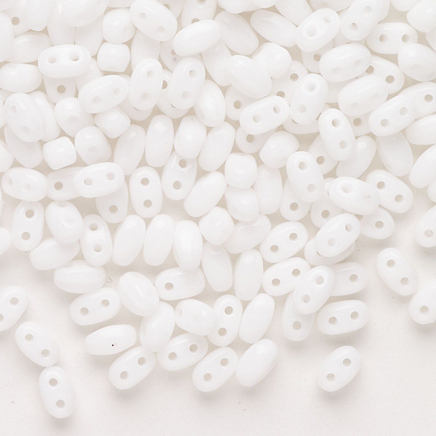Seed bead, Preciosa Twin™ Pressed Twin Czech glass, pkg/200, 5x2.5mm oval, opaque white, (15310).