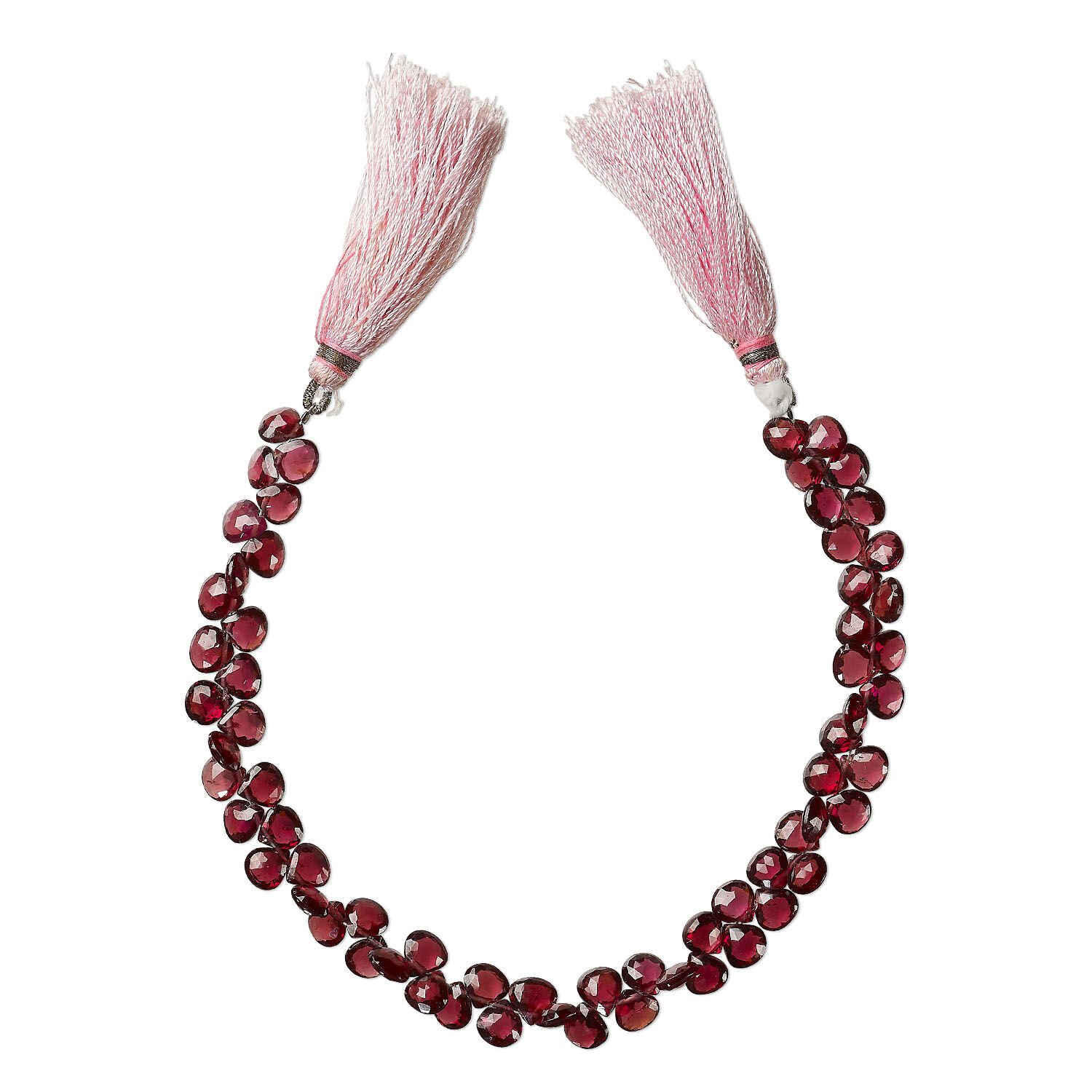 Radiant and richly colored, these natural A- grade rhodolite garnet puffed teardrop beads offer a depth of beauty garnet lovers treasure. Known for its lush raspberry-to-rose hues, rhodolite is a naturally occurring garnet variety prized for its exceptional clarity, high brilliance and vibrant transparency.