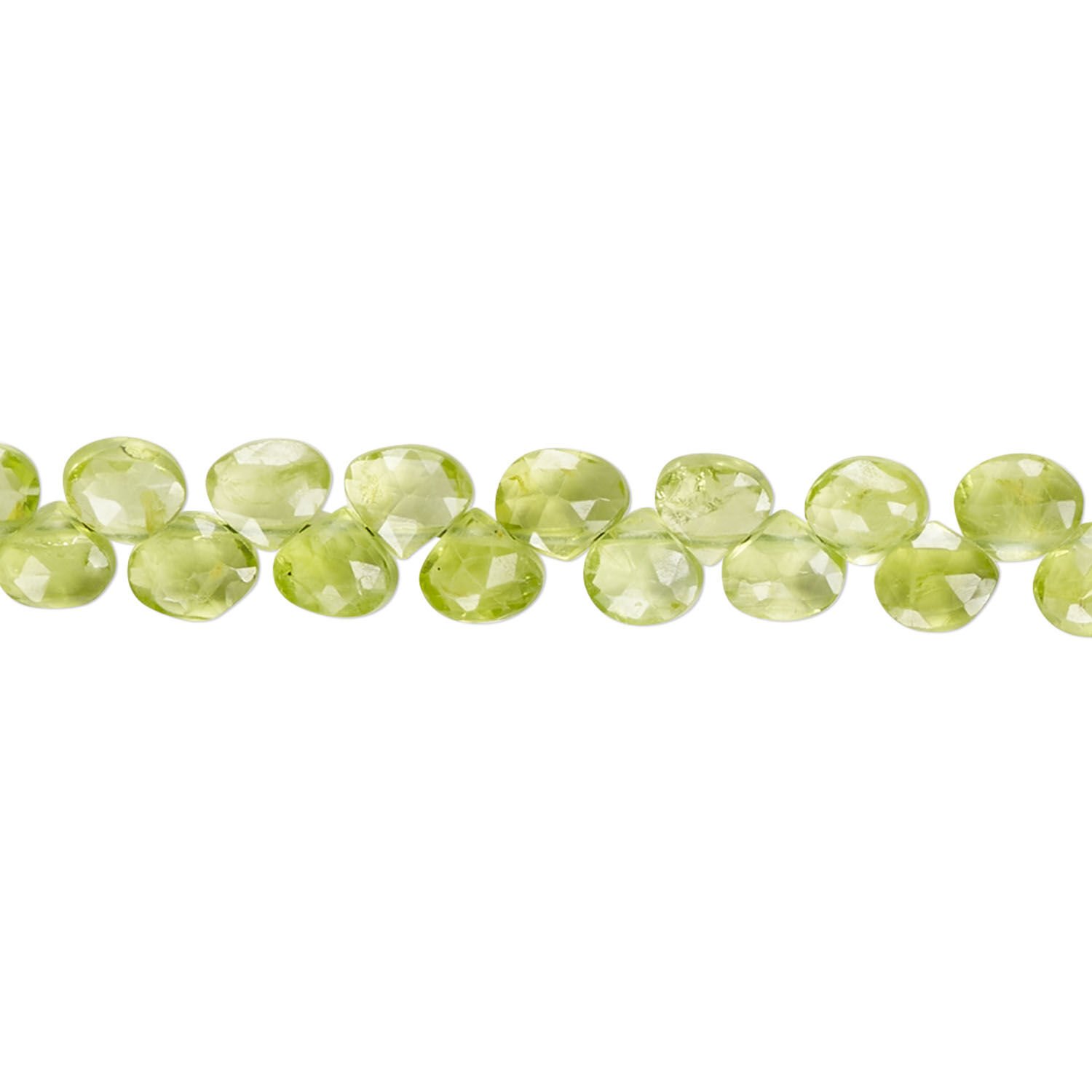 Peridot 1pkg1, hand-cut top-drilled faceted puffed teardrop bead natural, 8 inch 4mm