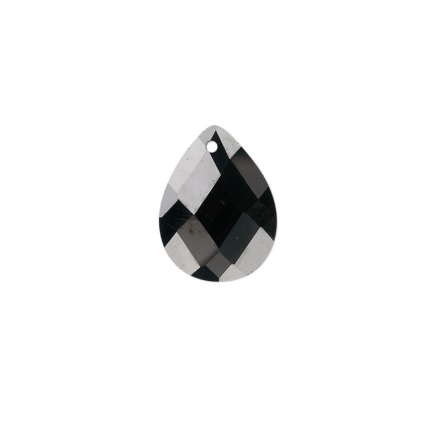 Drop, cubic zirconia, black, 16x12mm hand-faceted teardrop, Mohs hardness 8-1/2. Sold per pkg of 2.