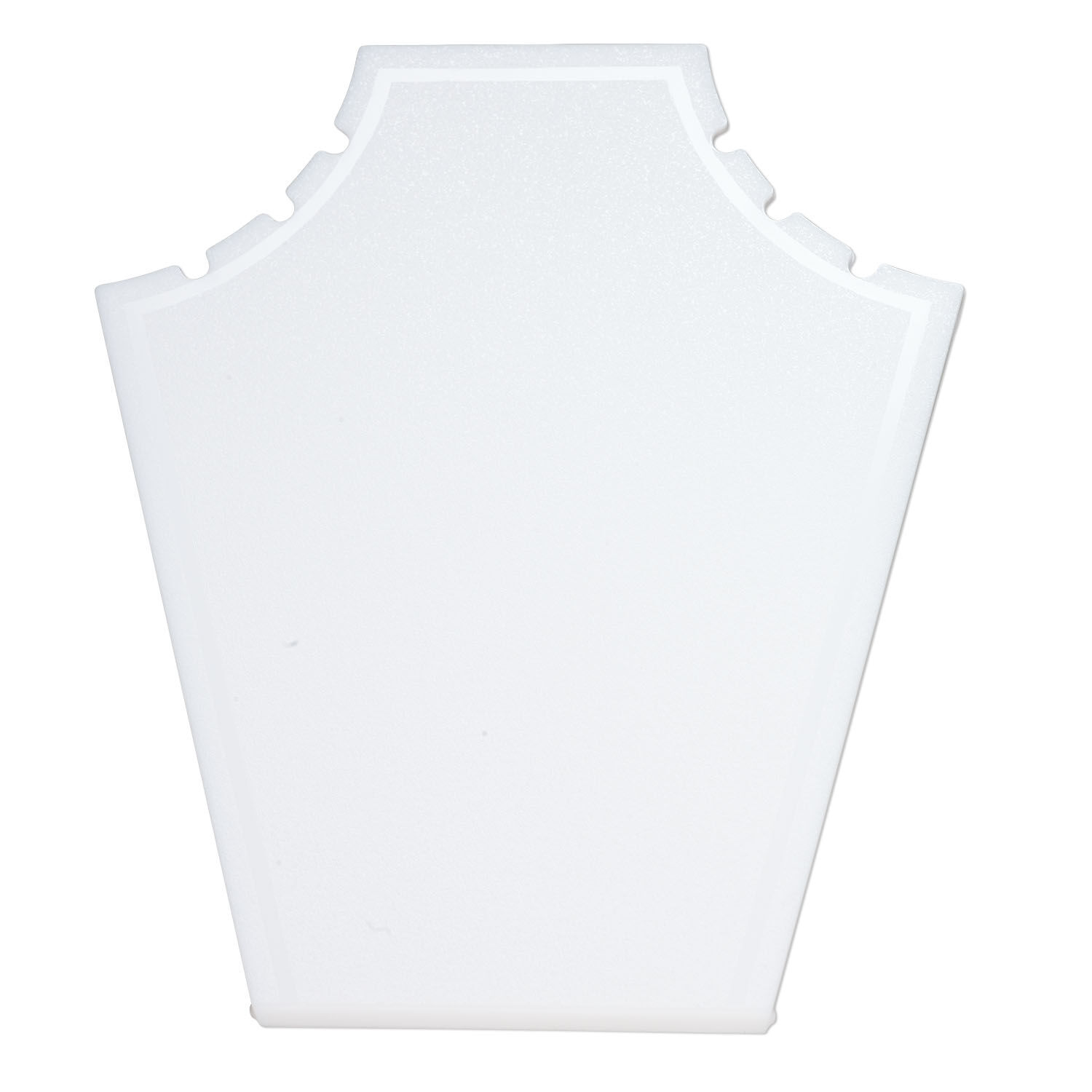 Show three or more chains, pendants or necklaces on these economical and stable acrylic displays. These shield-shaped displays have three slots to hold jewelry secure. The textured surface makes an attractive presentation.