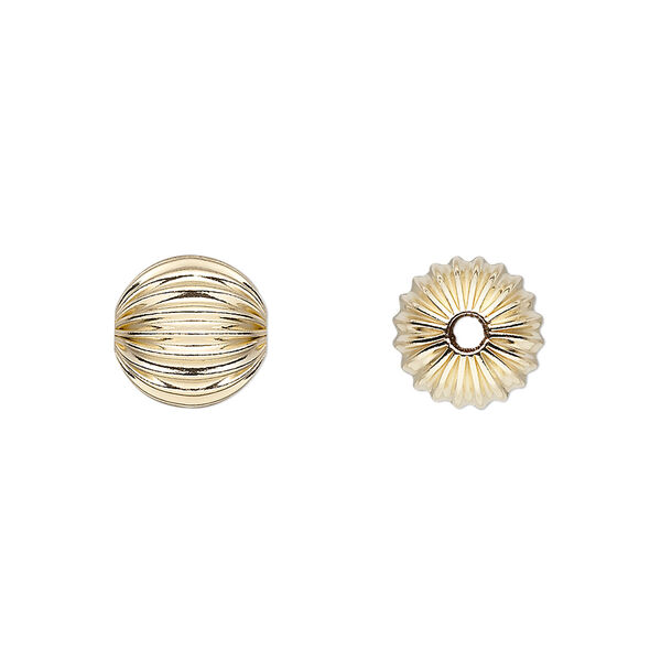 Gold-filled corrugated round beads bridge the gap between gold-plated and 14Kt gold. Gold-filled items are made by combining a layer, or layers, of gold alloy to a base metal, then rolling or drawing the metal to the desired thickness and shape. It has a long life and can be worn by most people without allergic reactions.