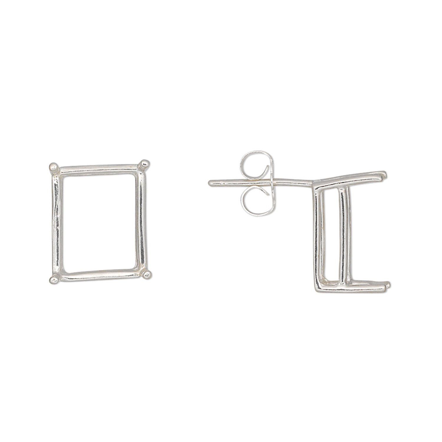 Earstud 1pkg2 Sure-Set™ sterling silver, 12x10mm emerald cut / pre-notched 4-prong basket-style setting / earnuts, 1 pair