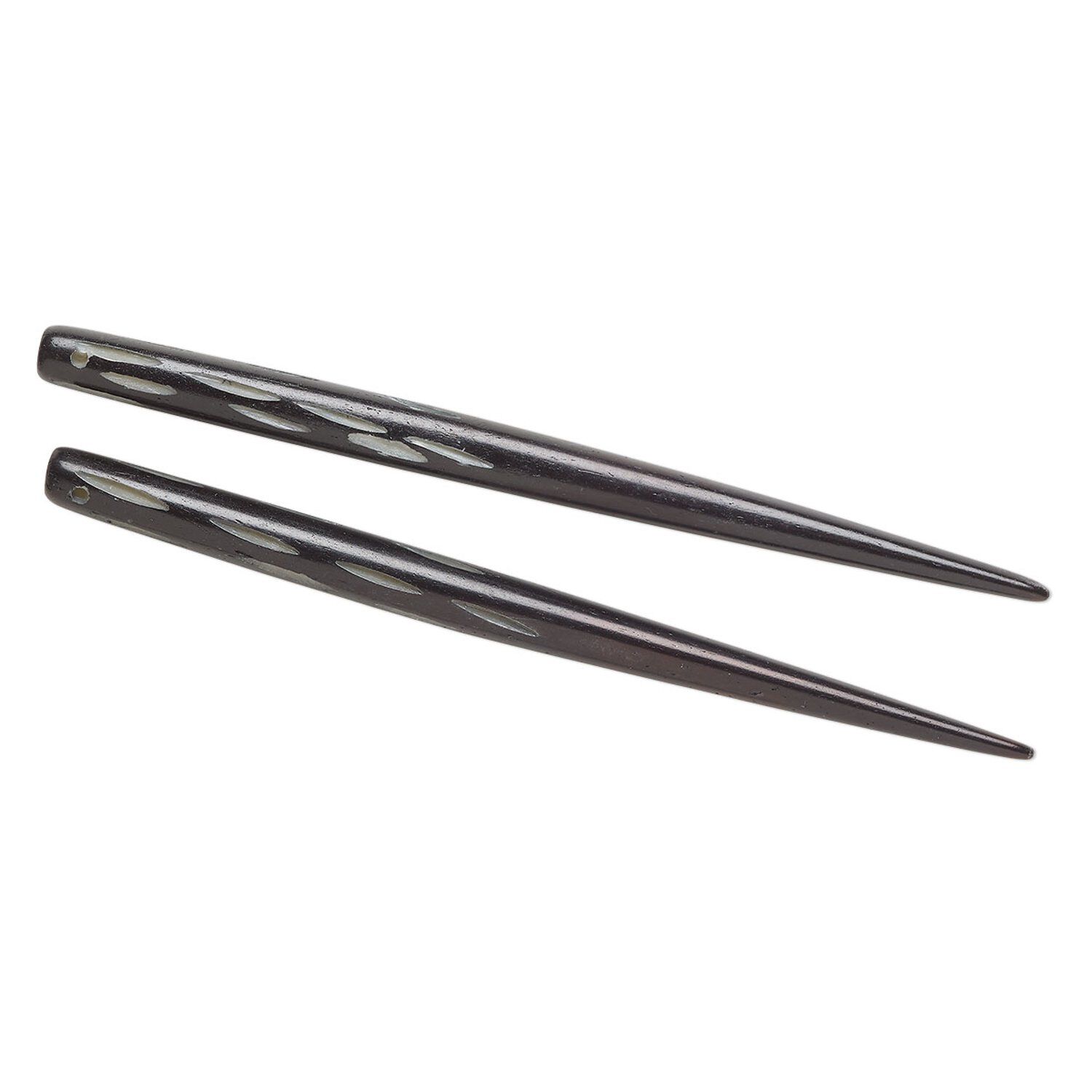 These bone hair sticks are available in the low-impact length of 4-1/2 inches for securing and adorning buns or other updos. The surface of each is smooth to avoid catching or tugging on hair. Each stick is drilled across the wide end to accommodate embellishments. Hair sticks are made from natural materials so they are not perfectly straight. Sizes, shapes and colors may vary with handcrafted items. Testing for colorfastness is recommended.