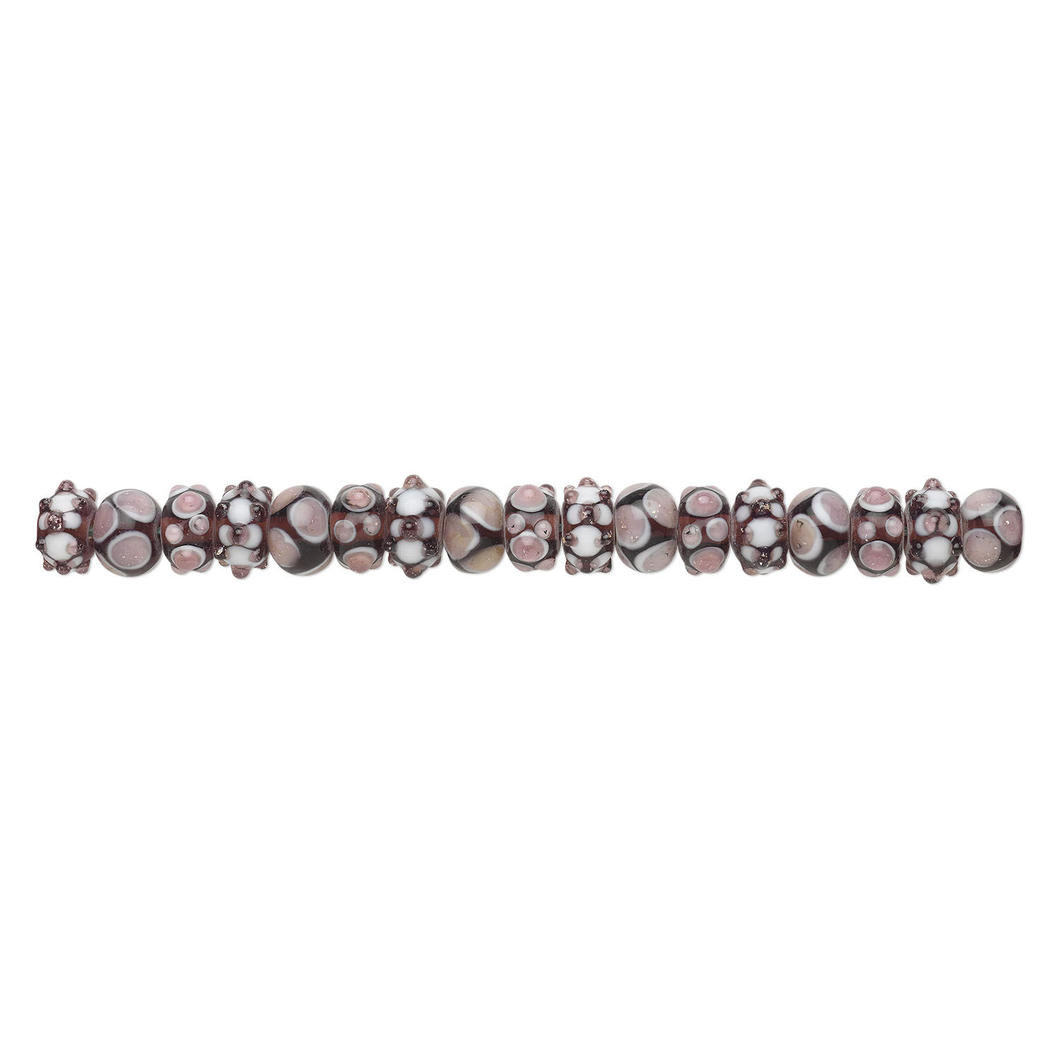 Bead, lampworked glass, purple / lavender / white, 14x8mm rondelle. Sold per pkg of 20.