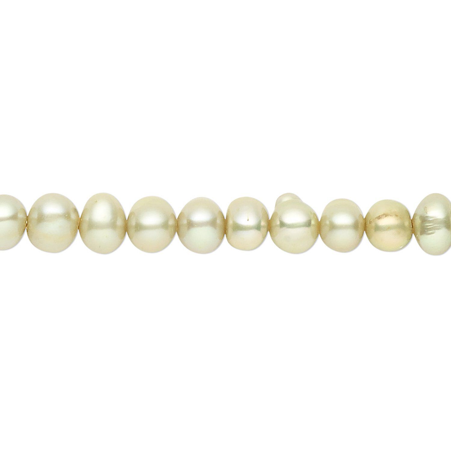 Pearl, cultured freshwater (dyed), pistachio, 4-5mm semi-round, C grade, Mohs hardness 2-1/2 to 4. Sold per 16-inch strand.