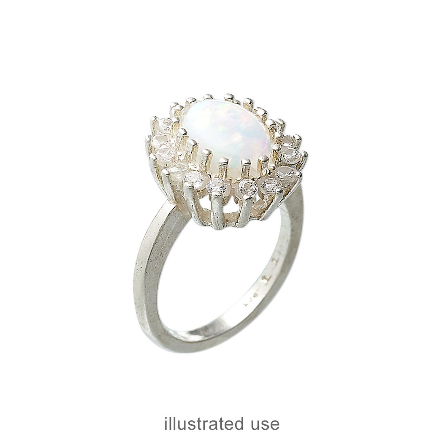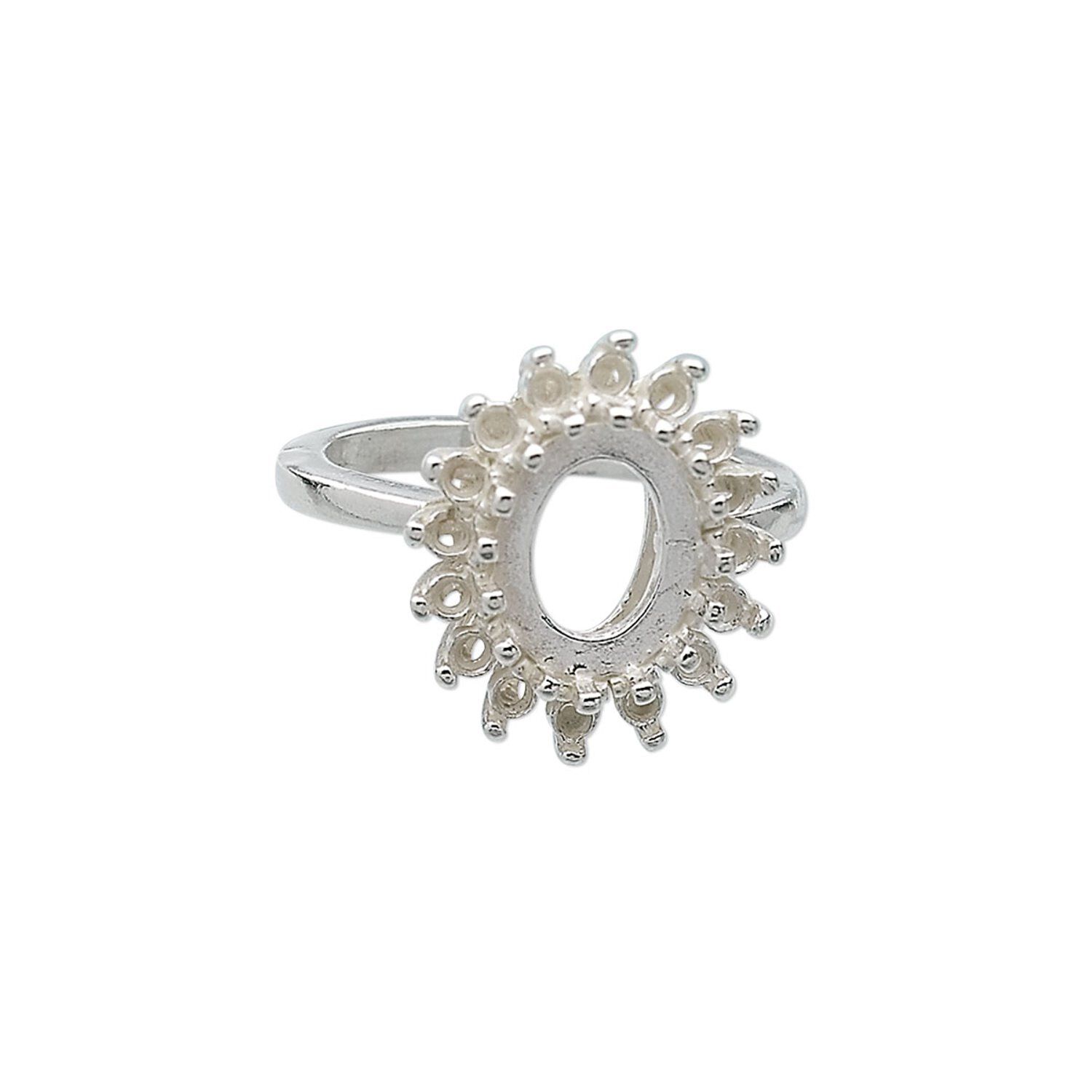Ring, sterling silver, (16) 2mm 2-prong round settings and (1) 10x8mm 16-prong oval setting, size 7. Sold individually.