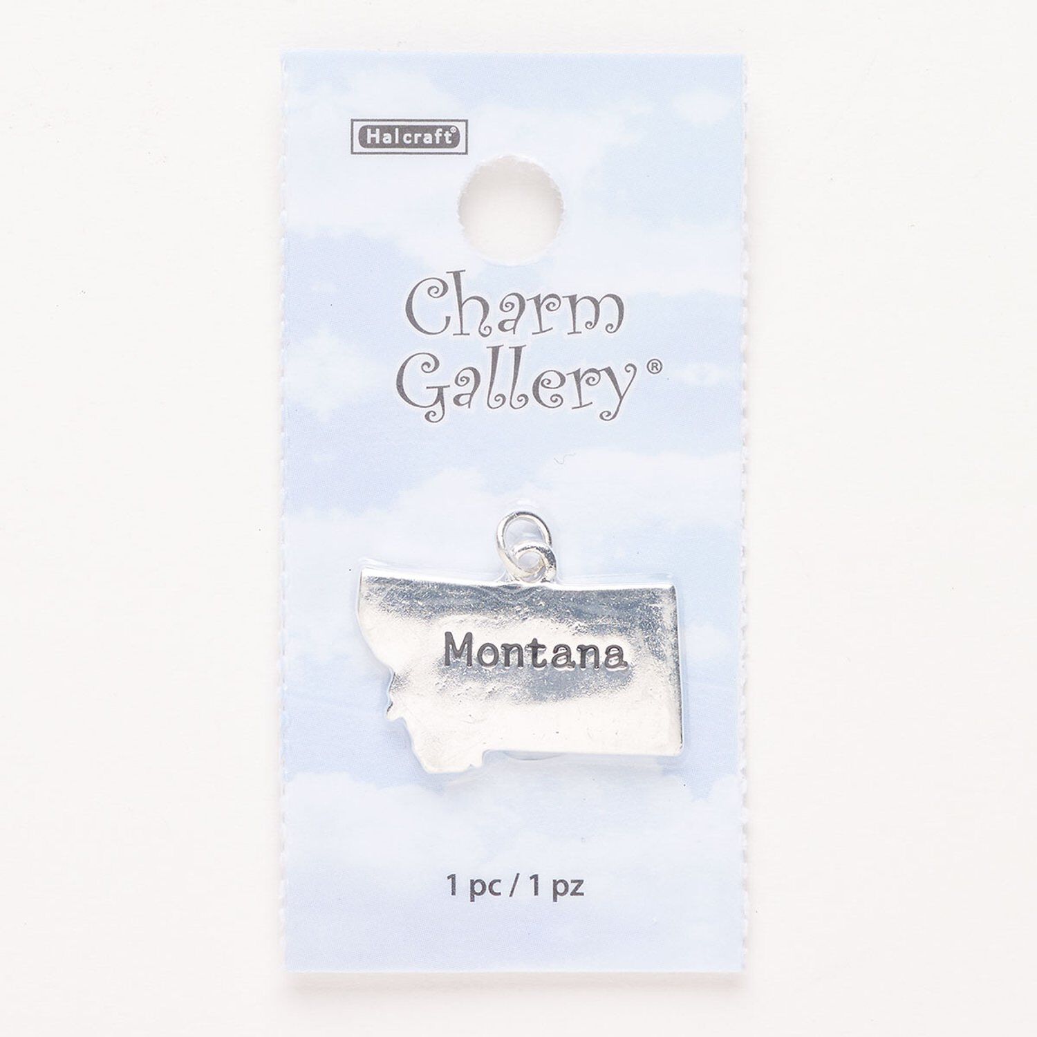 Charm, steel and enamel, pkg/1, silver finish and black, 24x15mm with "Montana."
