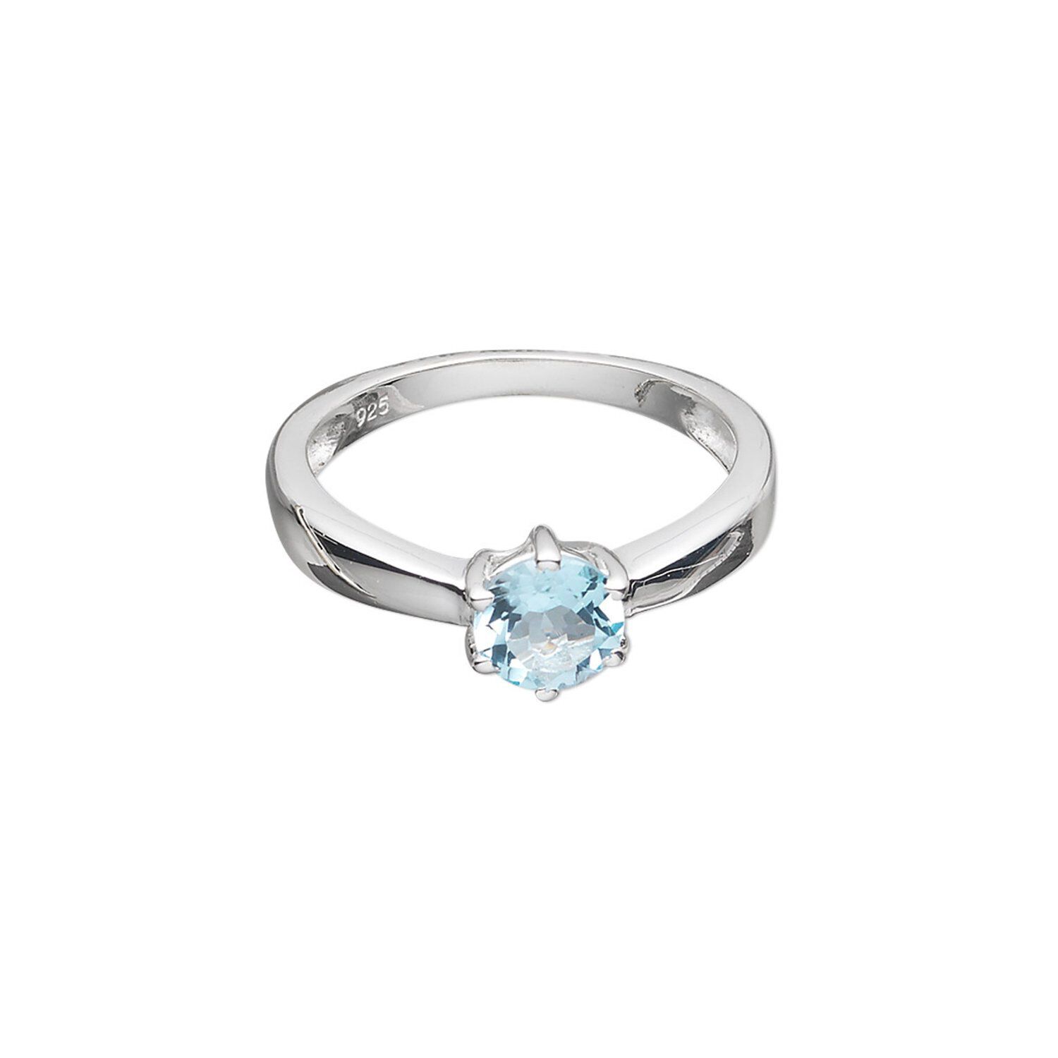 Ring, sterling silver with sky blue topaz (irradiated), 7mm faceted round, size 7. Sold individually.