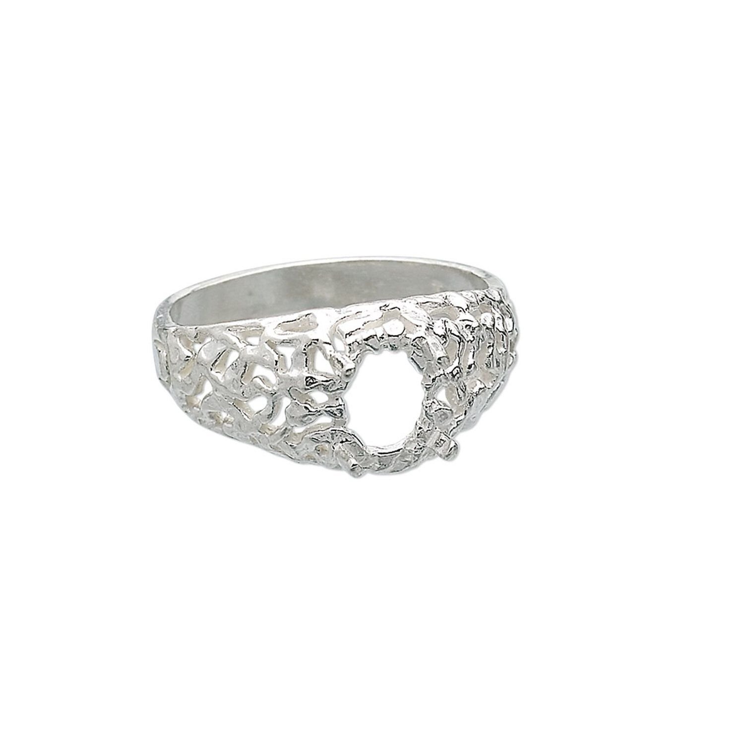 Ring, sterling silver, freeform band with 8x6mm 4-prong oval setting, size 9. Sold individually.