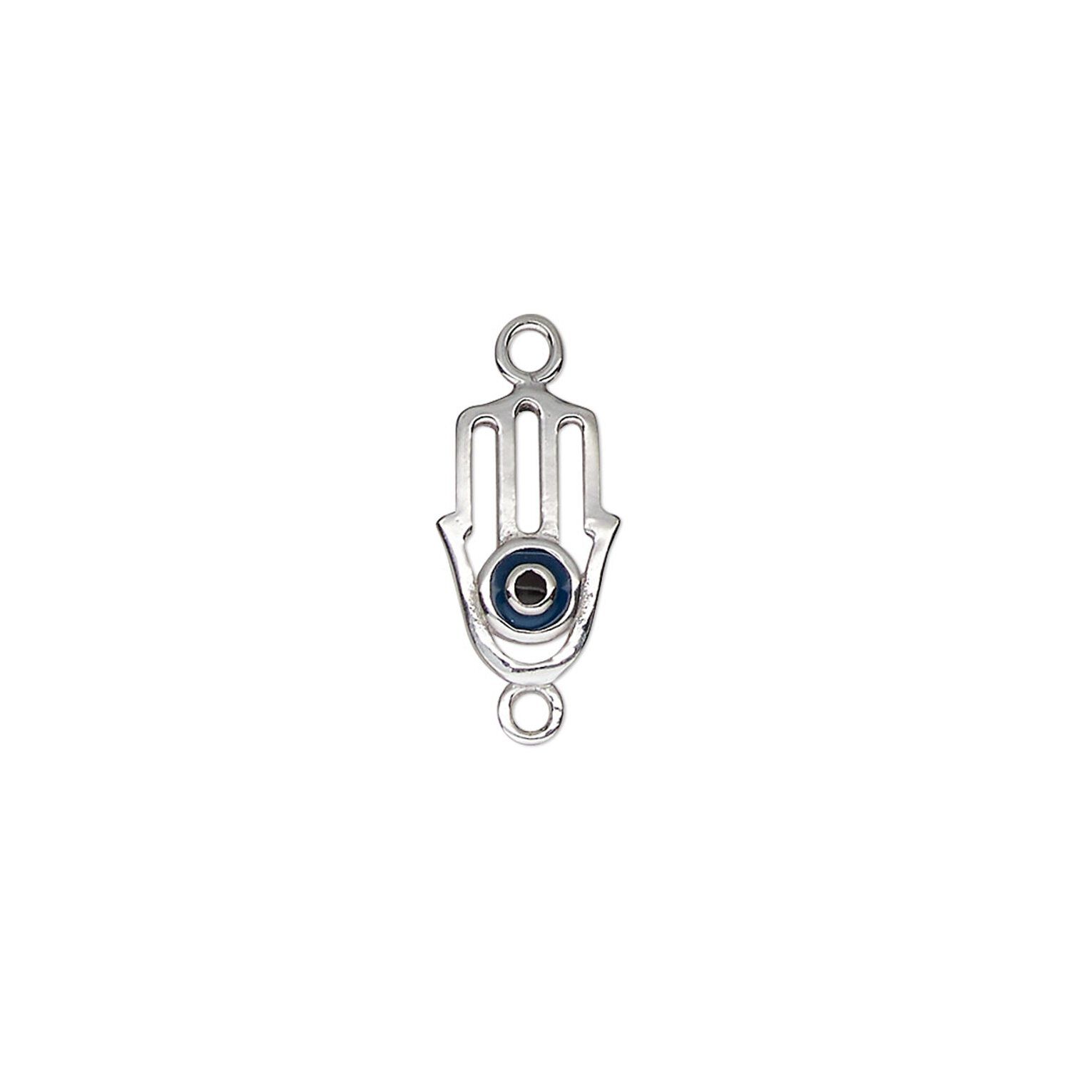 Link, color-coated sterling silver and enamel, dark blue and black, 11x8mm single-sided Hamsa hand. Sold individually.