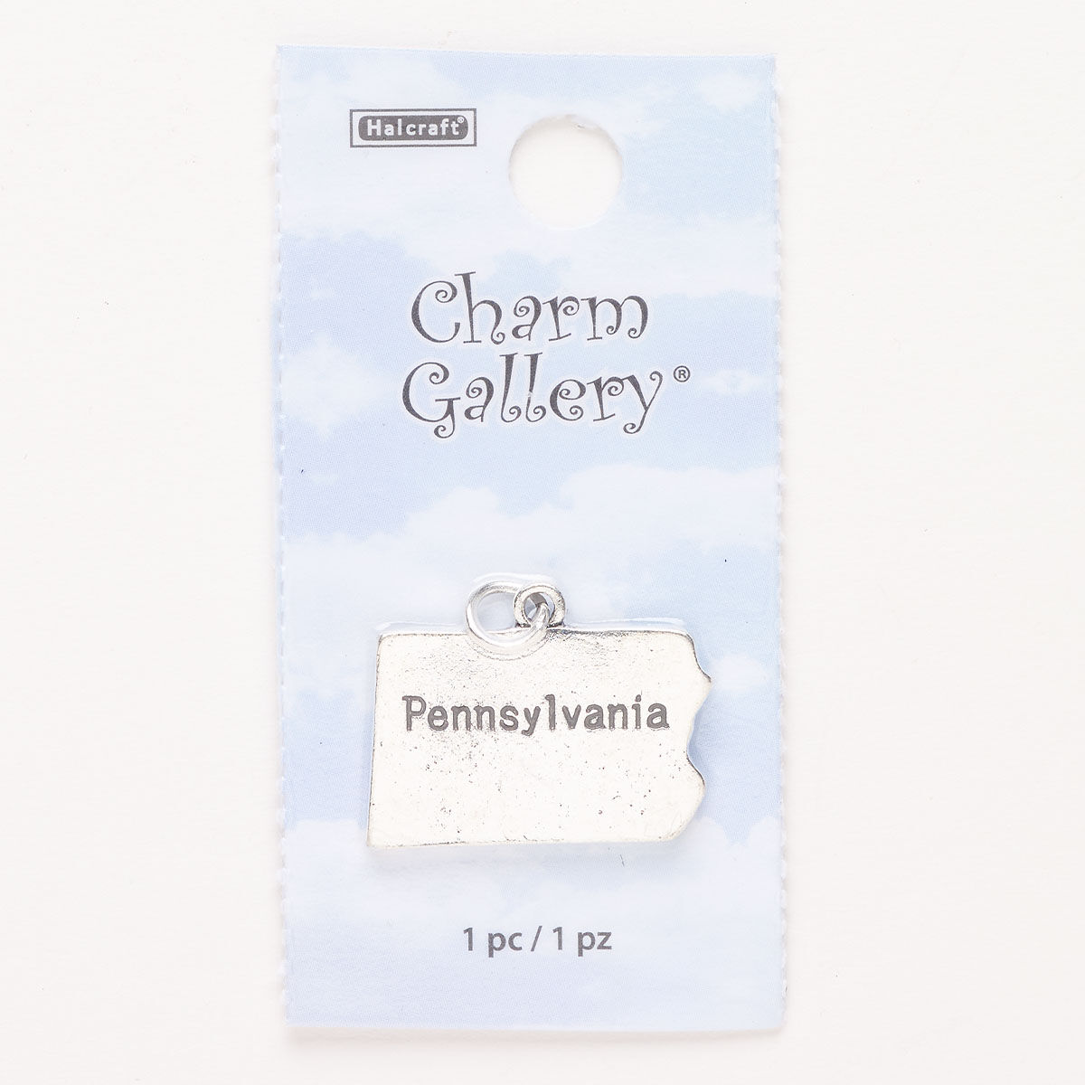 Charm, steel and enamel, pkg/1, silver finish and black, 23x15mm with "Pennsylvania."