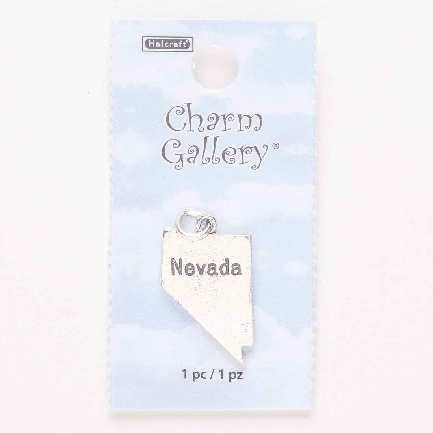 Charm, steel and enamel, pkg/1, silver finish and black, 23x16mm with "Nevada."