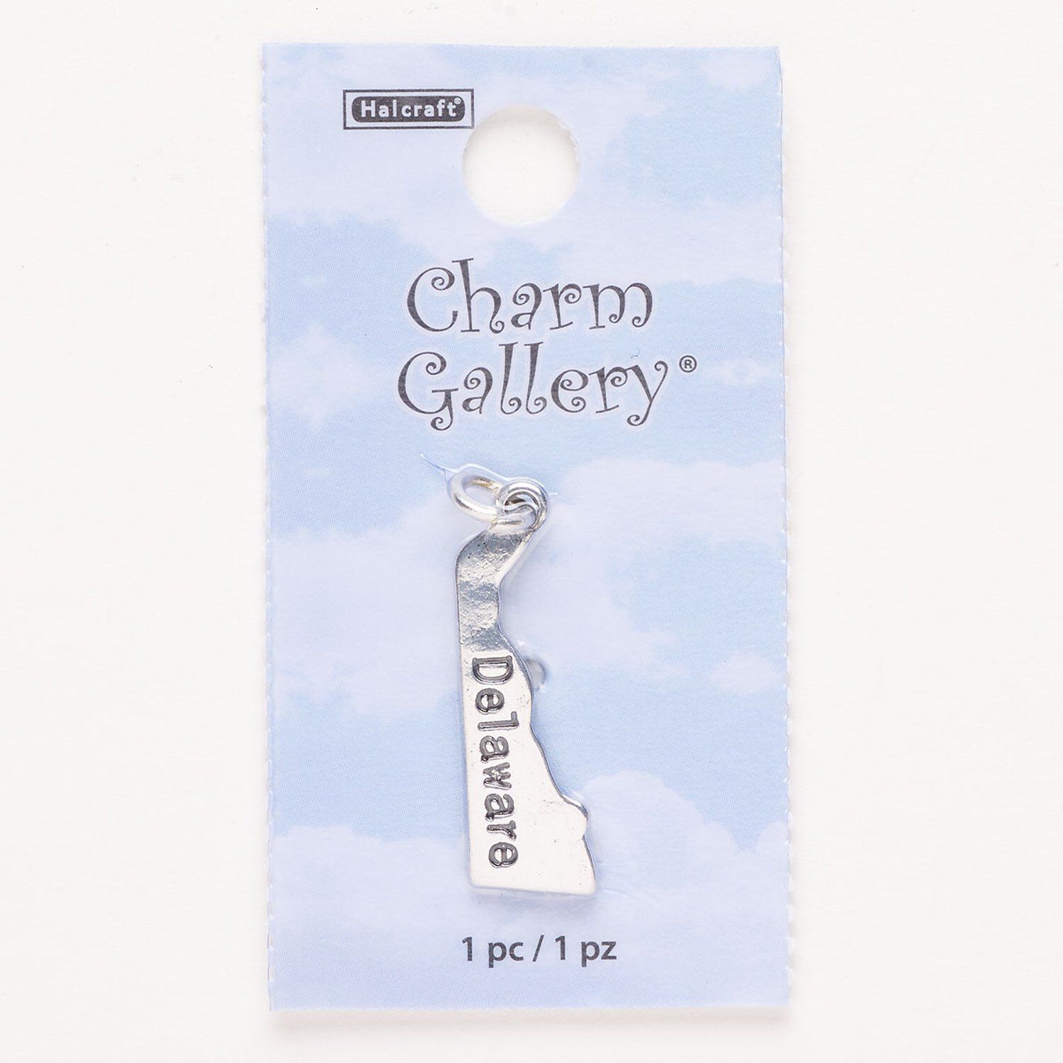 Charm, steel and enamel, pkg/1, silver finish and black, 25x9mm with "Delaware."