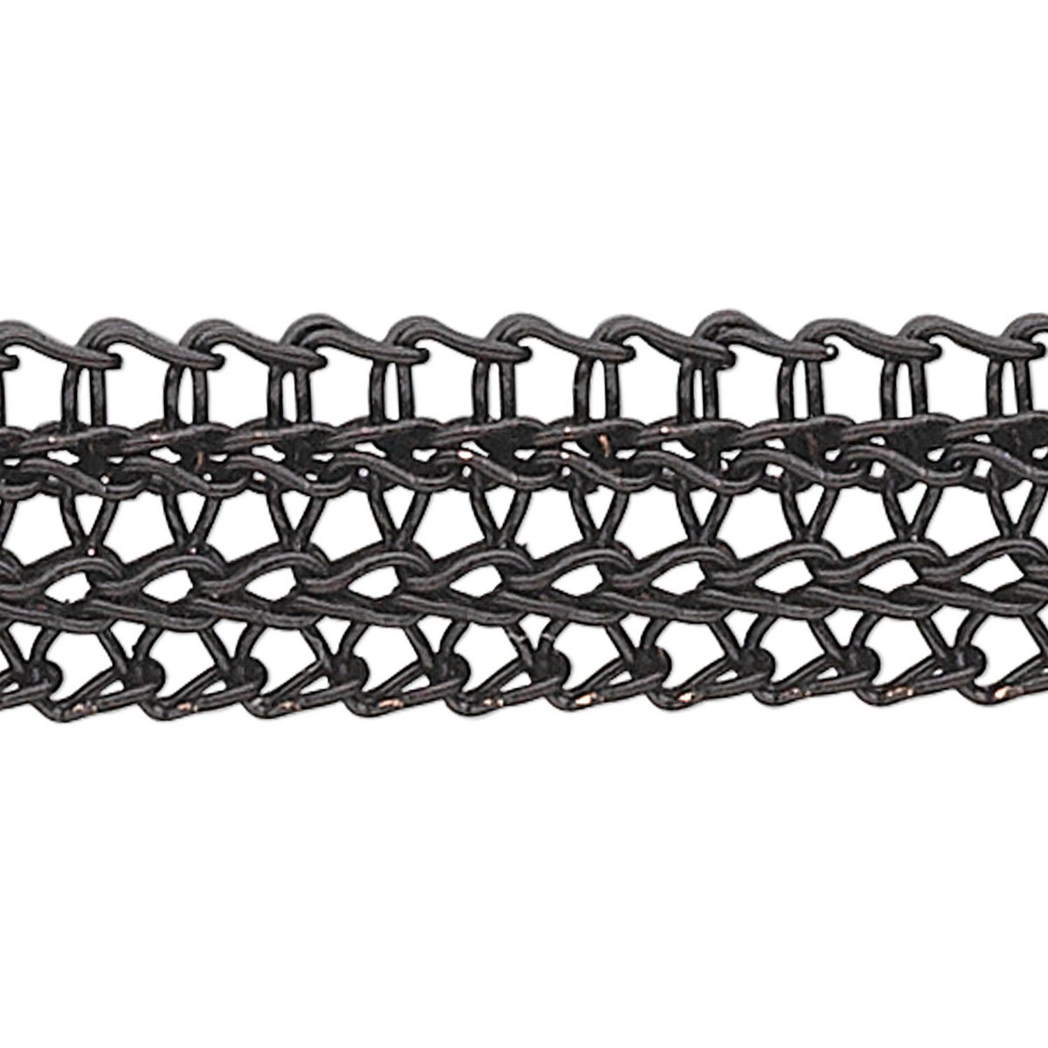 Machine-woven 0.007 fine copper wire with black enamel finish creates a flexible and supple drape, that can be knotted between beads, with the strength of heavier cord. String beads and pendants directly onto wire and glue or crimp ends into crimp tubes with loops to attach clasp. Machine-woven chain cuts easily with wire cutters and will hold its shape to support medium to heavy beads. Woven designs, sizes and colors may vary.