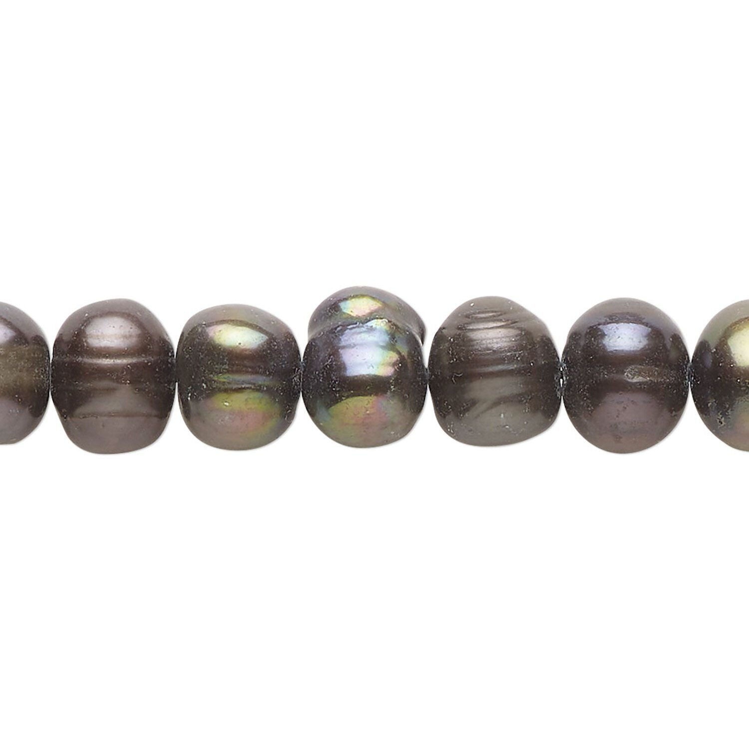 Pearl, cultured freshwater (dyed), dark peacock, 7-8mm semi-round, C grade, Mohs hardness 2-1/2 to 4. Sold per 16-inch strand.