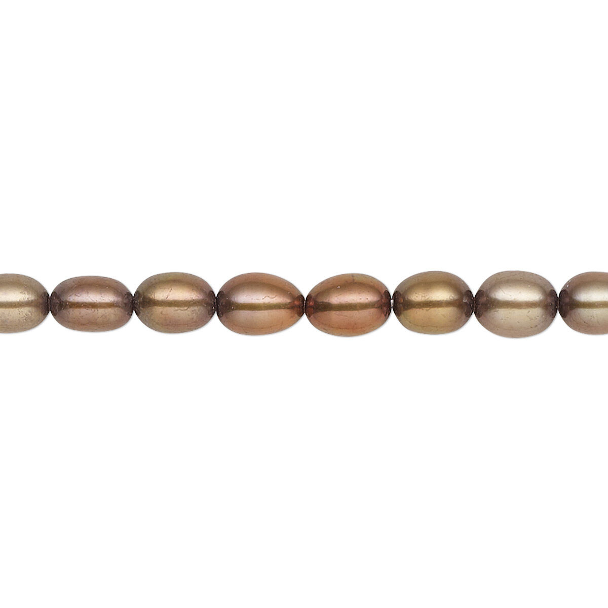 Pearl, cultured freshwater (dyed), antique copper, 4-5mm rice, C grade, Mohs hardness 2-1/2 to 4. Sold per 15-1/2" to 16" strand.