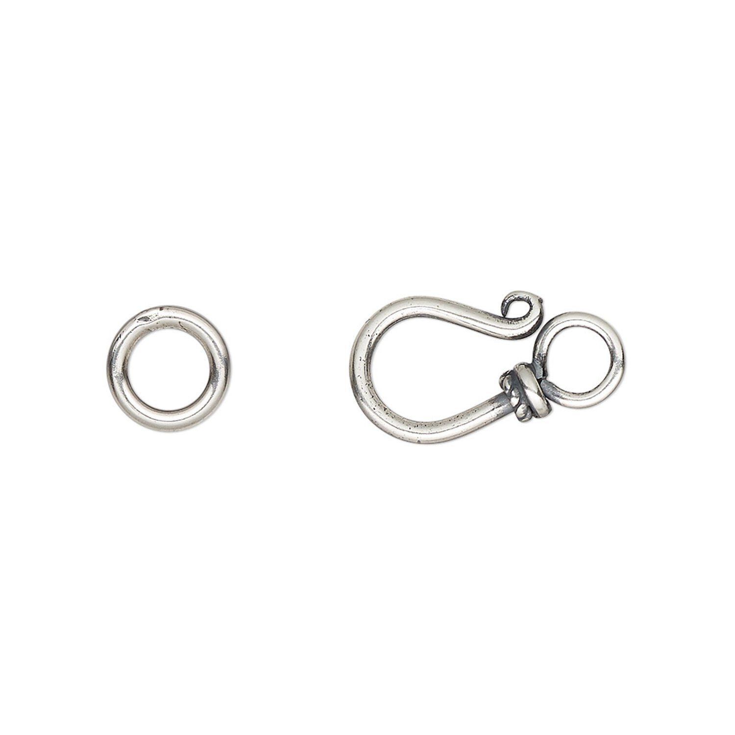 Clasp hook&eye 1pkg1 sterling silver, 13x9mm, 1-strand