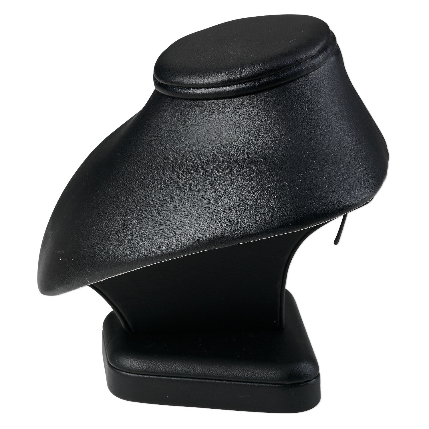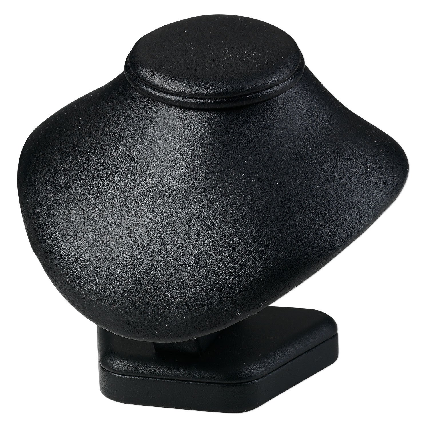 Display, necklace, leatherette, black, 5 x 5-1/2 x 5-inch pedestal. Sold individually.