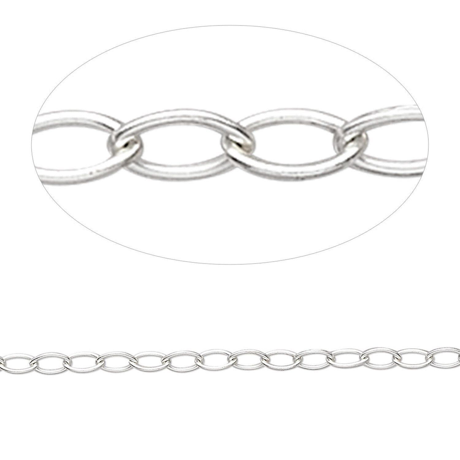 Fantastic chain styles in sterling silver available in 5-foot packages. Experiment by stringing these chains with gemstone, acrylic and pearl beads into long length, luxurious necklaces, or multiple "stacked" bracelets. Or simply add a clasp and you're ready to go. These classics will be worn and appreciated for years. Chain has an anti-tarnish coating.
