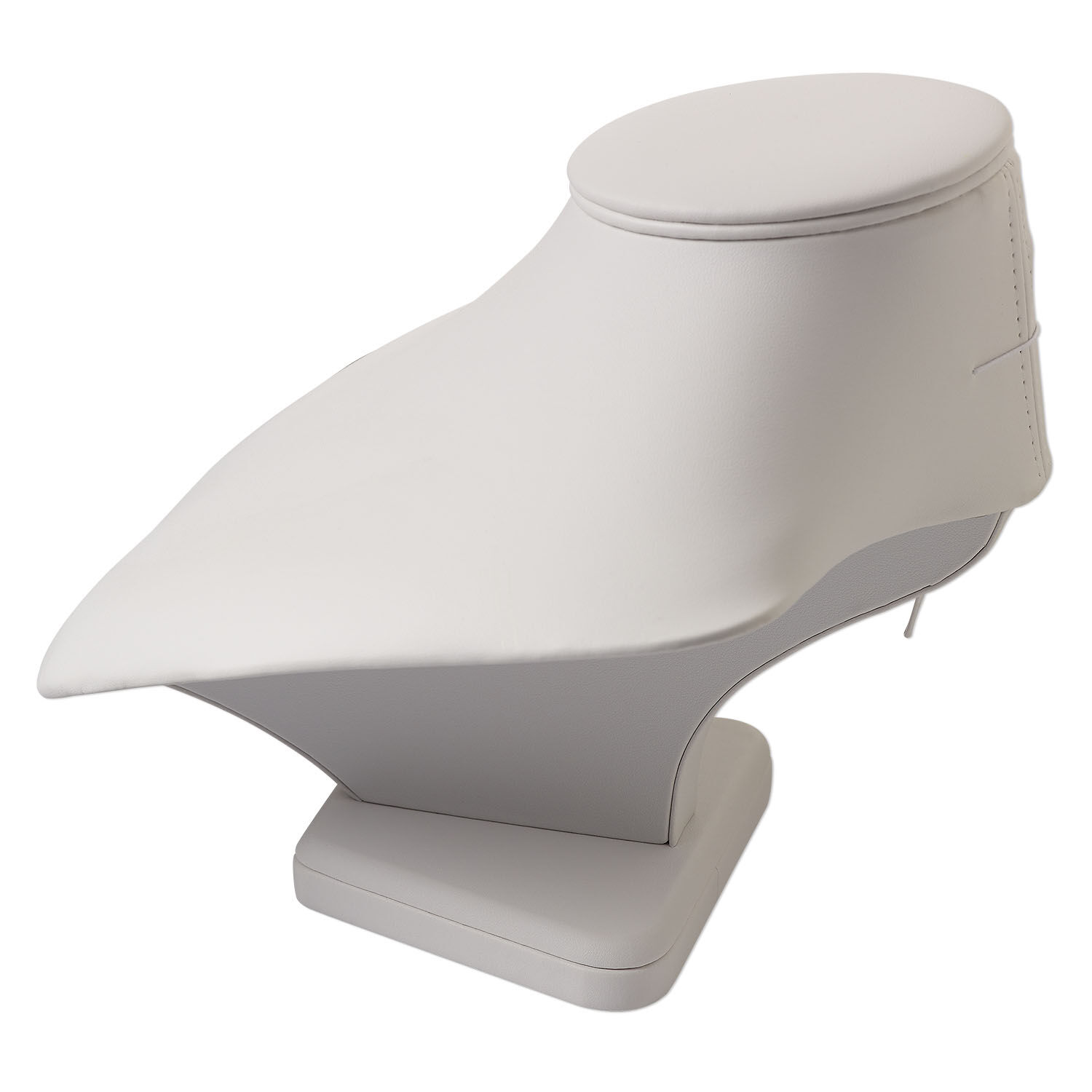 Nicely padded for a flawless presentation, this leatherette pedestal display will show a choker, wide chain or large necklace with ease. Its low profile means it can be used in a case or shallow display area. One hook in back retains a piece for perfect viewing.