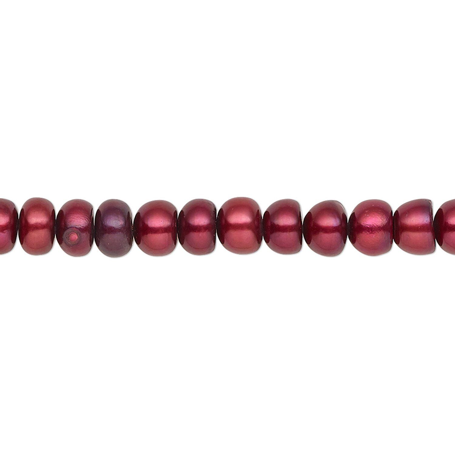 Pearl, cultured freshwater (dyed), black cherry, 5-6mm button, C grade, Mohs hardness 2-1/2 to 4. Sold per 16-inch strand.