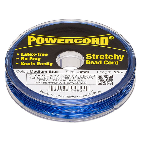 The major advantage of latex-free Powercord® is that it returns to its original shape after stretching. Perfect for use with transparent gemstone beads as well as crystal and glass. High-quality elastic is perfect for making today's popular fast-selling chokers, bracelets or anklets. There are about 27.34 yards in these long-lasting 25-meter spools. Knots easily to terminate strands.