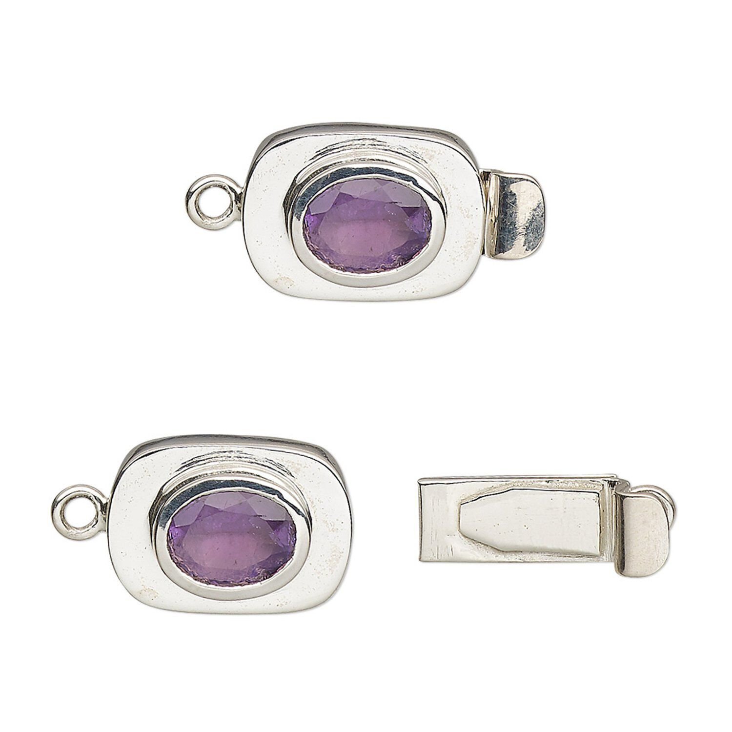Clasp tab 1pkg1 sterling silver / amethyst (natural), 13x10mm oval / 8x6mm faceted, 1-strand