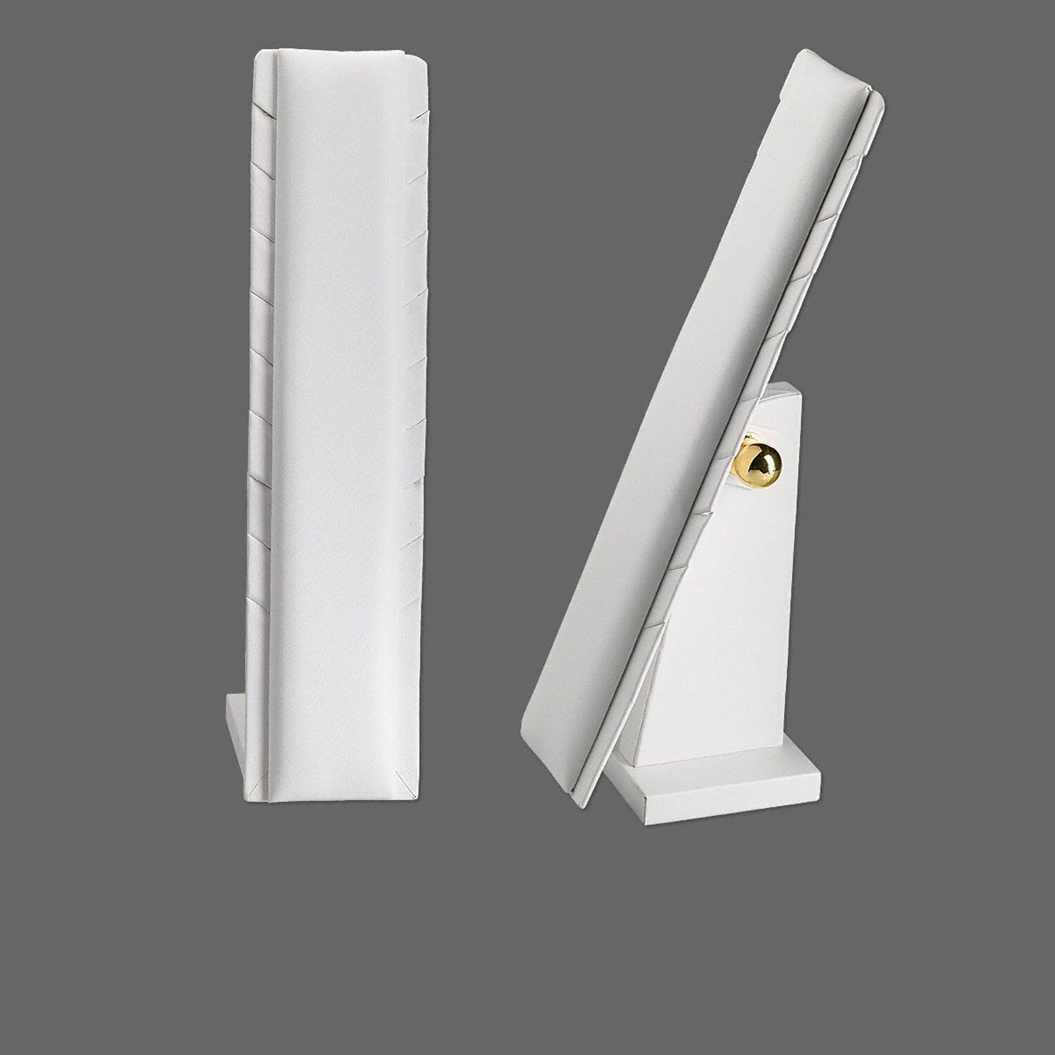 Display, necklace, leatherette, white, 8 x 2-3/4 x 3-1/2 to 11-3/4 x 2-3/4 x 12 inches. Sold individually.