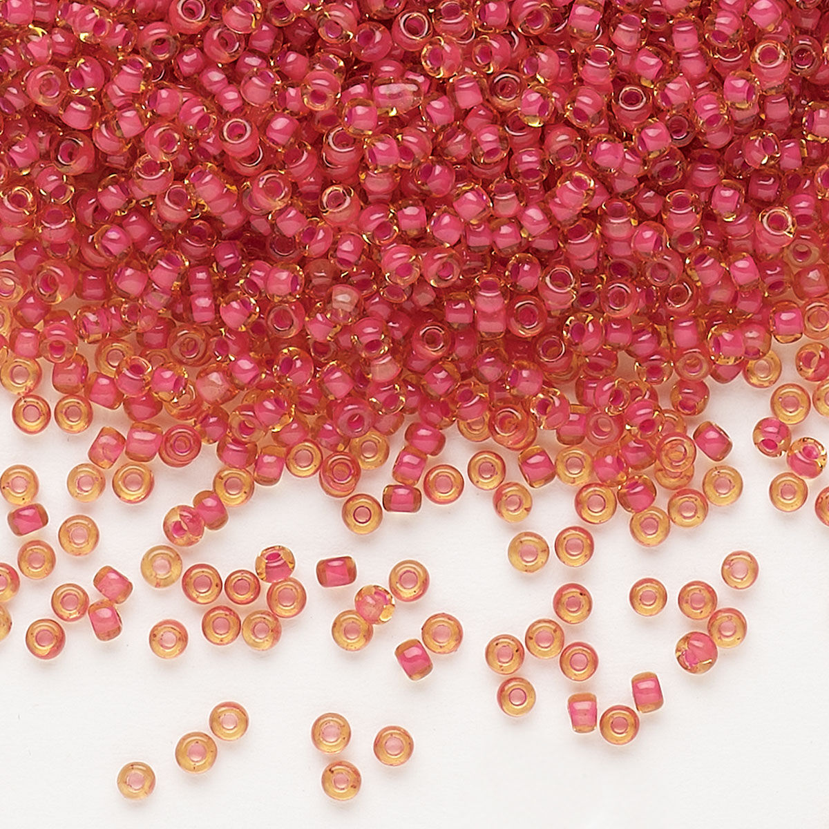 Seed bead, Dyna-Mites™, glass, pkg/40g, #11 round, translucent inside dyed color yellow/fuchsia, (226 11/0 RR).