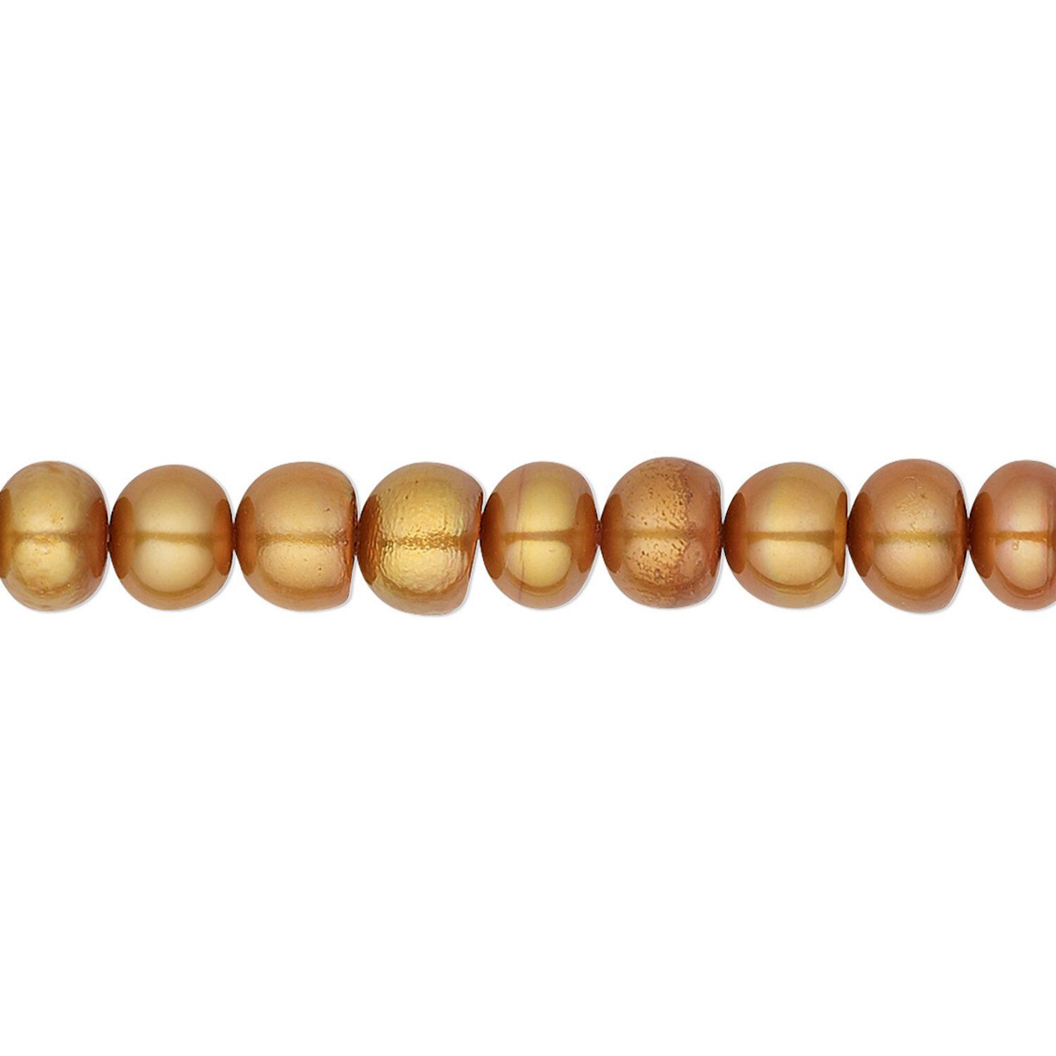 Pearl, cultured freshwater (dyed), copper, 6-7mm button, C grade, Mohs hardness 2-1/2 to 4. Sold per 16-inch strand.