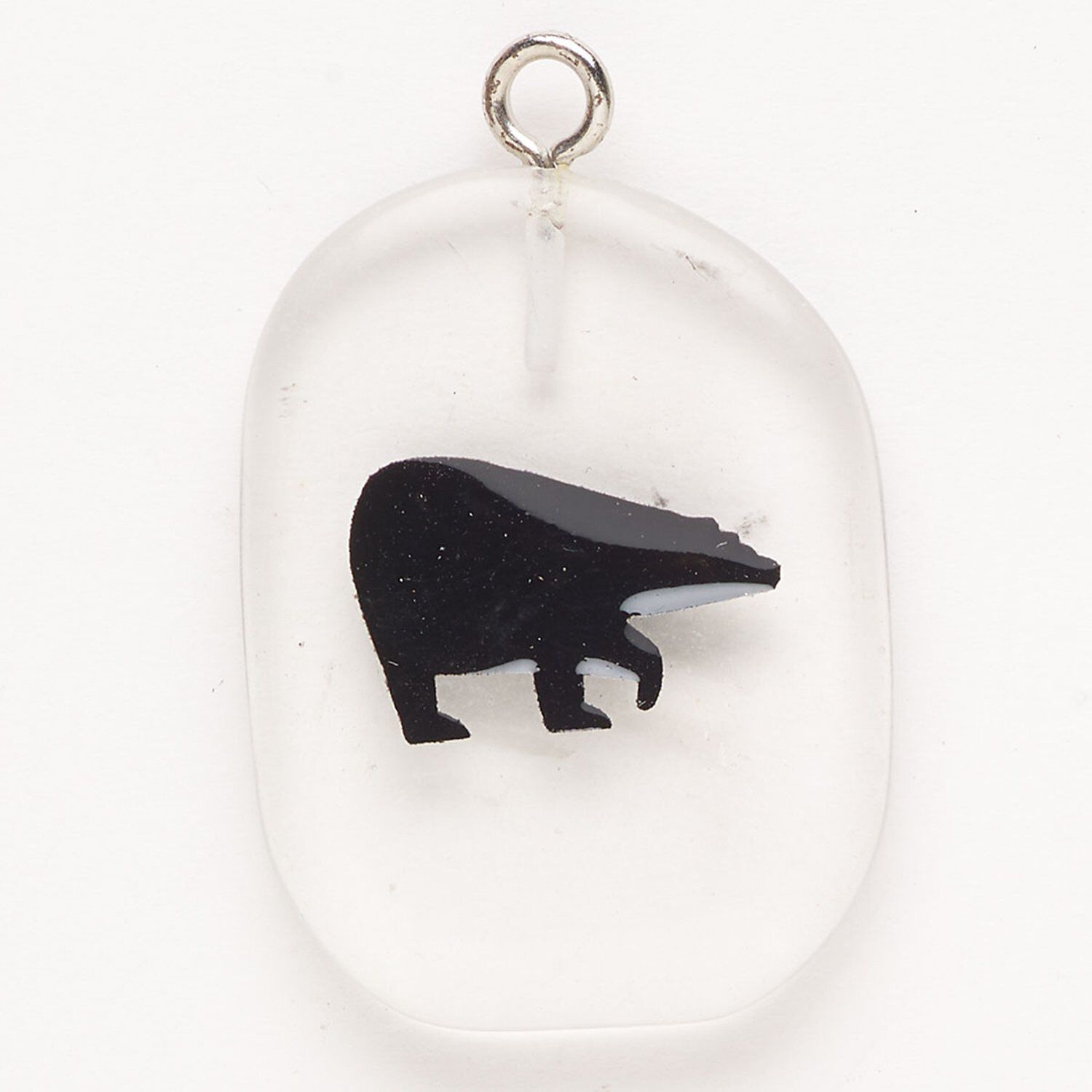 Focal, steel/glass/enamel, pkg/1, silver finish/clear/black, 33x26mm single-sided puffed freeform with bear.
