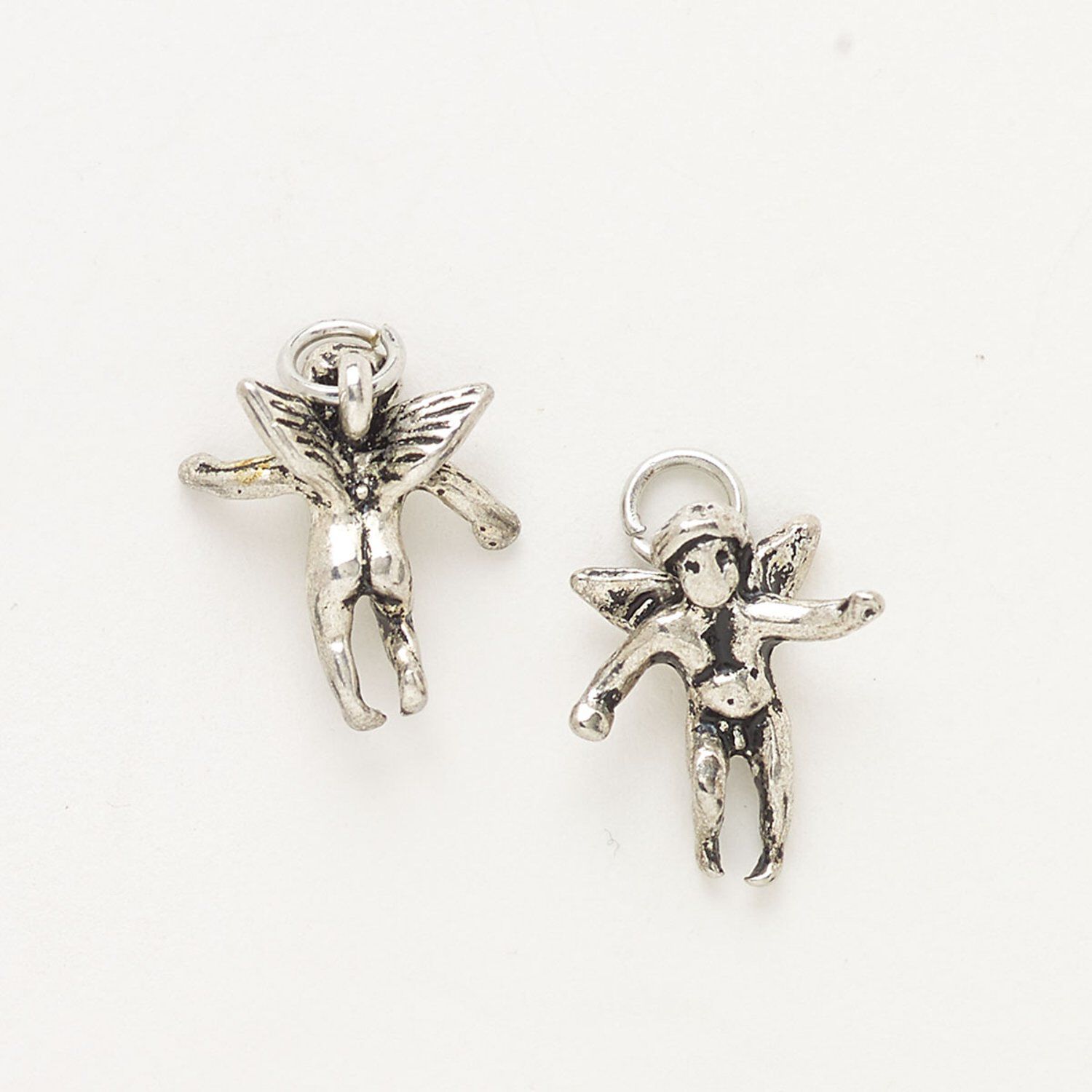 Charm, "pewter" (zinc-based alloy) and steel, pkg/2, antique silver finish, 14x12mm-15x13mm 3D cherub.