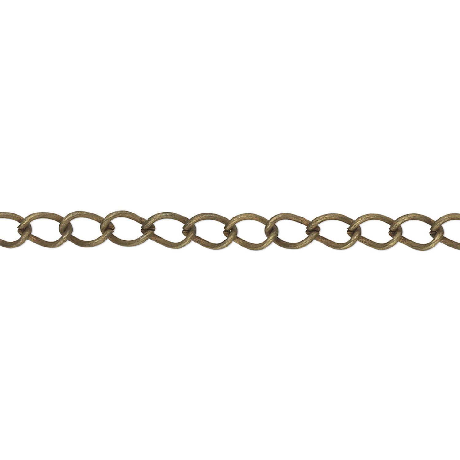 Chain 1pk1 antique brass-plated steel, 3.5mm lightweight curb, pkg of 5 meters.
