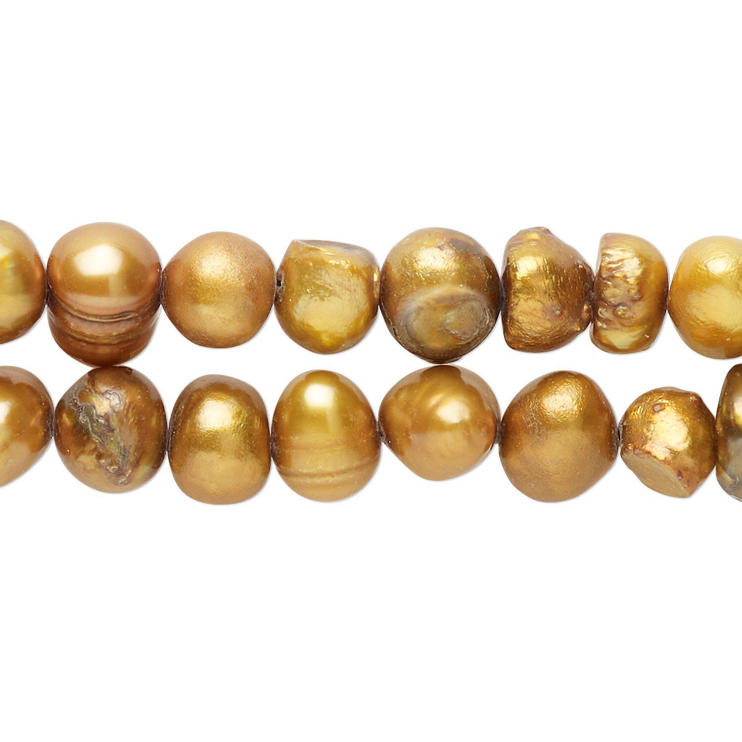 Pearl, cultured freshwater pearl (dyed), pkg/14 inches, dark gold, 7-11mm semi-potato.