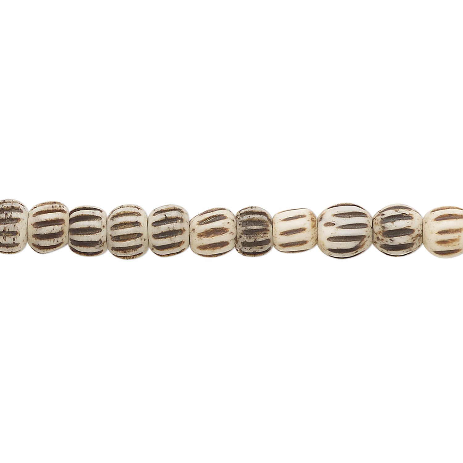 Bead, bone (dyed) 1pkg1, antiqued brown and black, 5x4mm corrugated barrel, 15.5-16 inch strand.