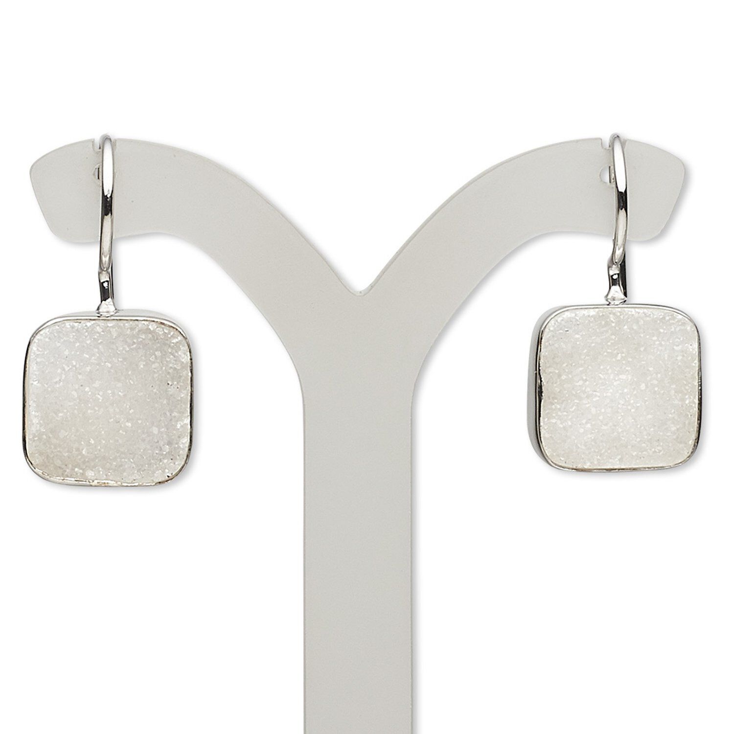 Earring, agate druzy (natural) and sterling silver, 1 inch with cushion and fishhook ear wire. Sold per pair.