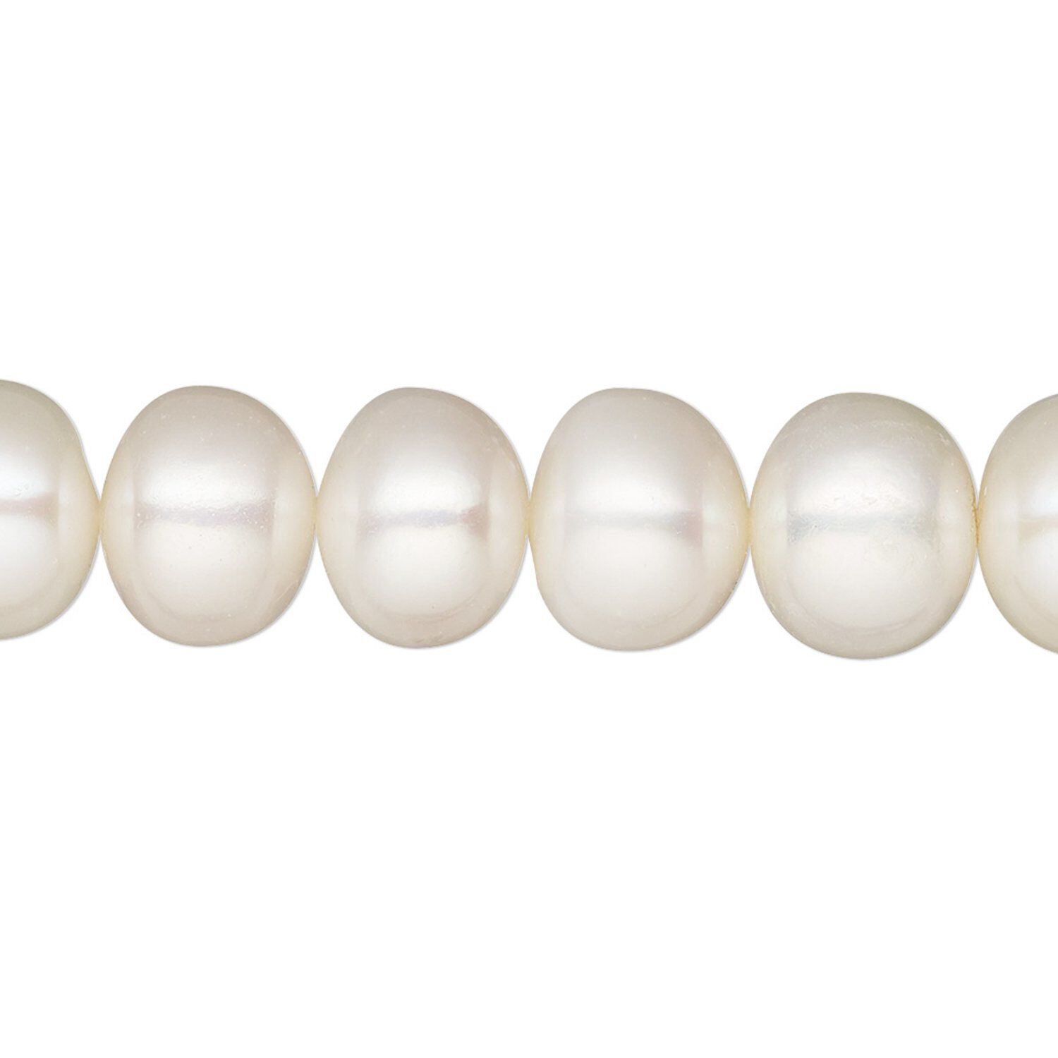 White cultured freshwater pearls have an heirloom-quality look. These C grade pearls have an off-white color, irregular shape and surface, and a medium luster which may be non-uniform. Since pearls are a natural material, color and sizes will vary.