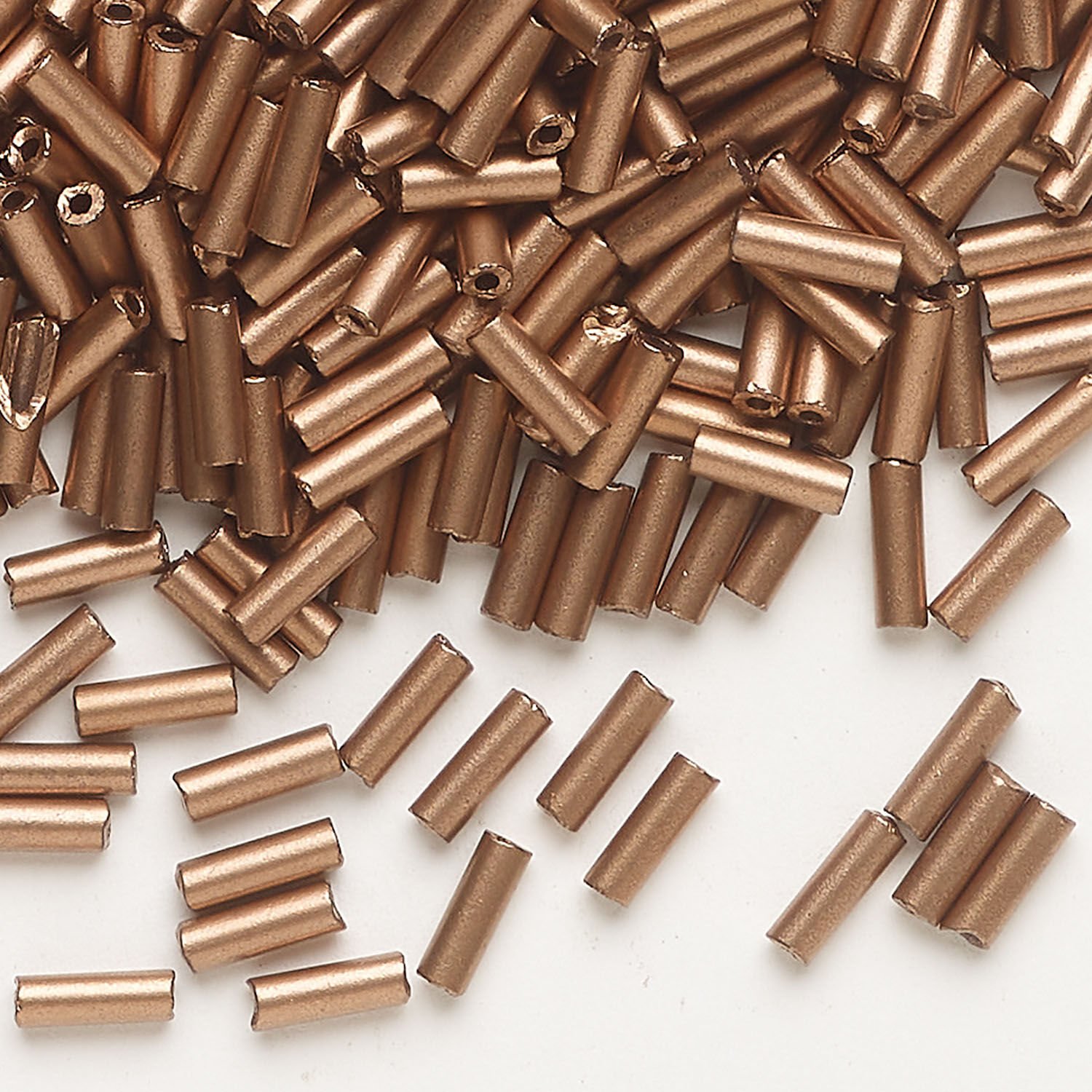 Bead, Preciosa Ornela Czech glass, bugle bead, pkg/50g, 1/4 inch (6x2mm) #3, antique metallic copper alabaster.
