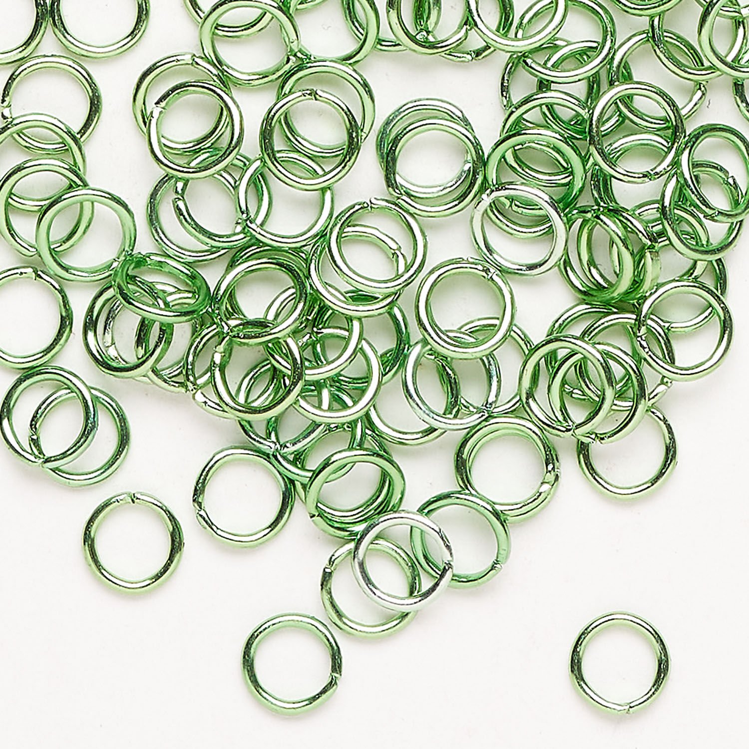 Jump ring 1pkg100 anodized and dyed aluminum, bright green, 6mm round, 4.2mm inside diameter, 18 gauge.
