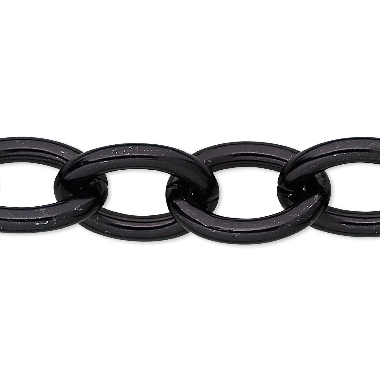 Chain 1pkg1 cable, 14mm, smooth aluminum / anodized black 5 foot unfinished