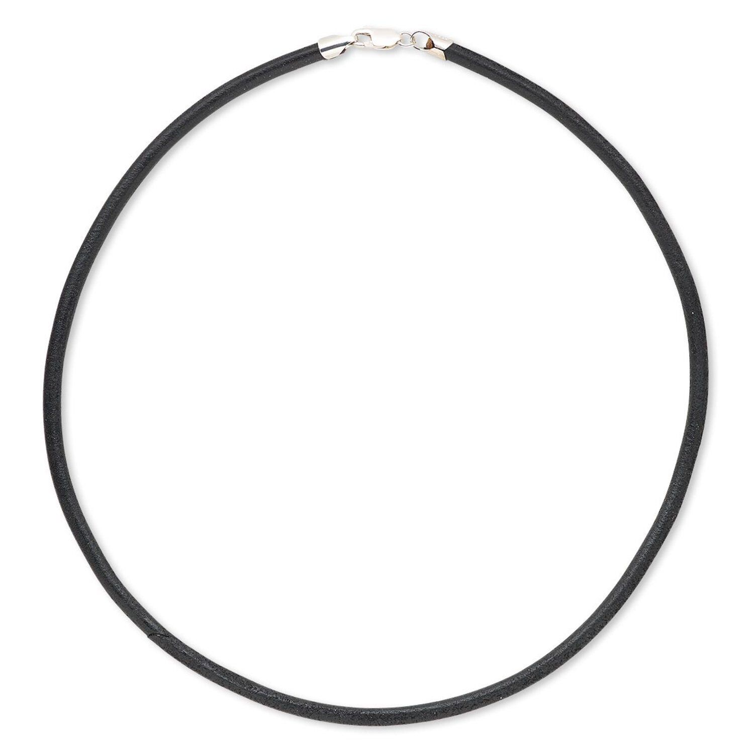 Necklace cord, leather (dyed) and sterling silver, black, 4mm round, 18 inches with lobster claw clasp. Sold individually.